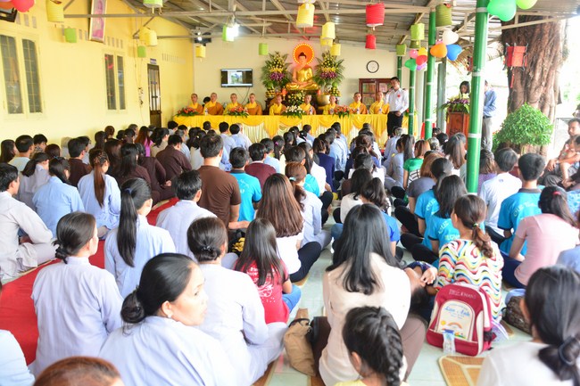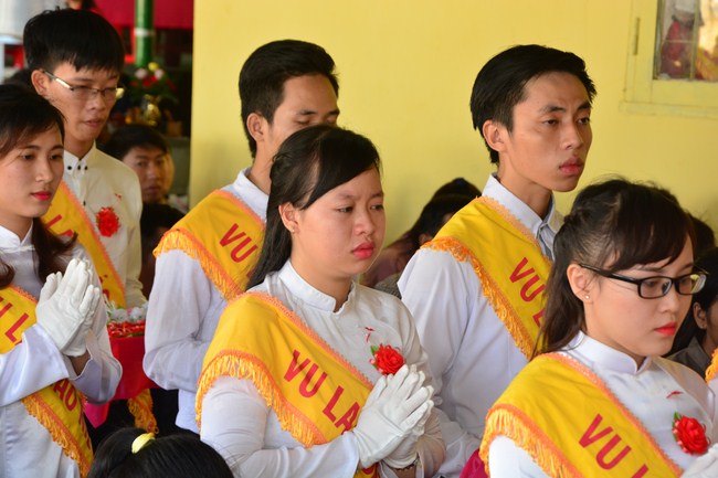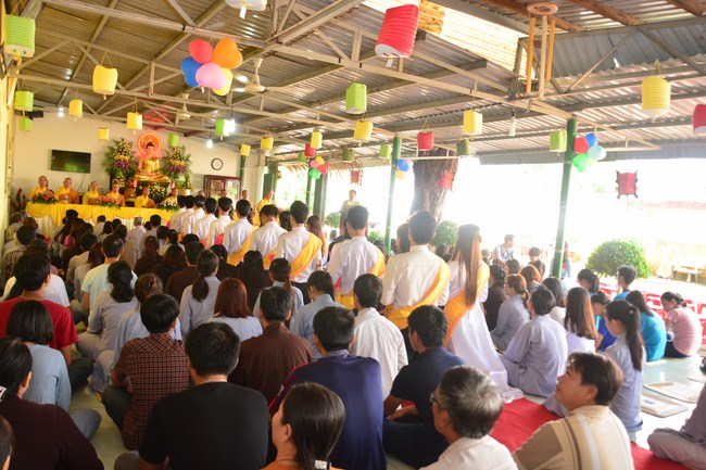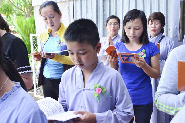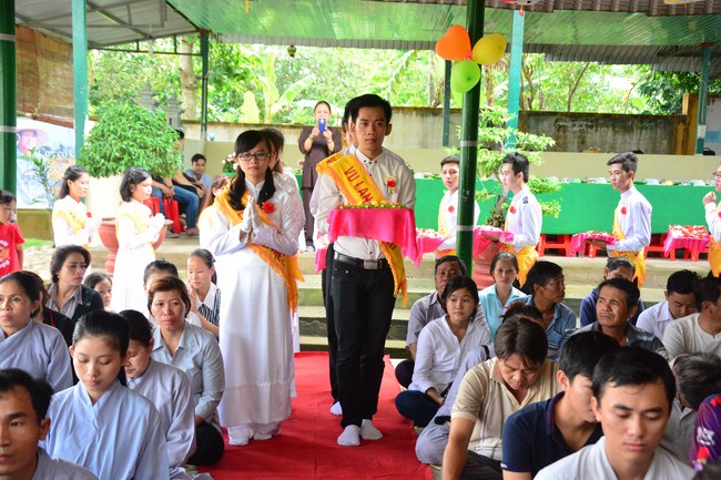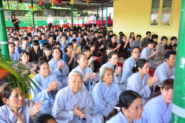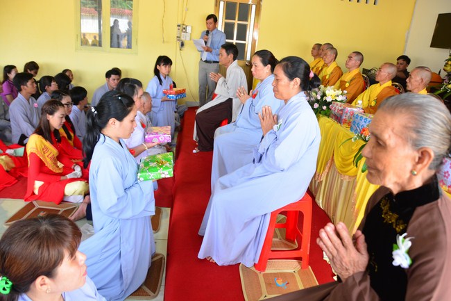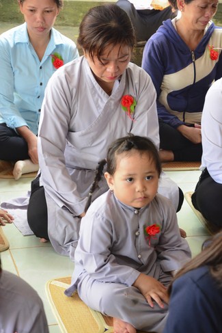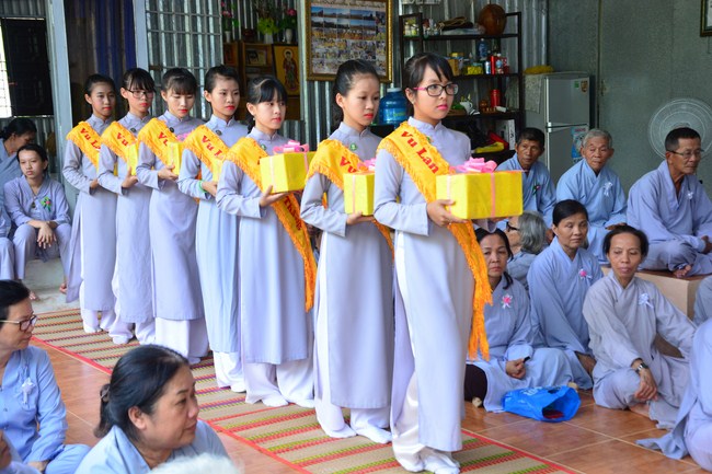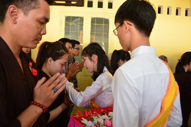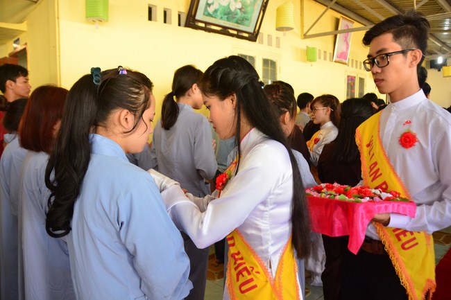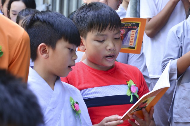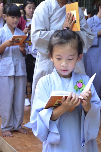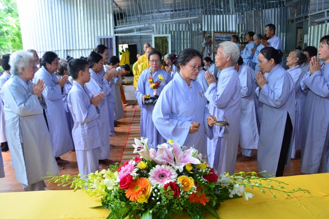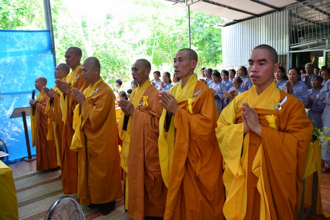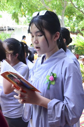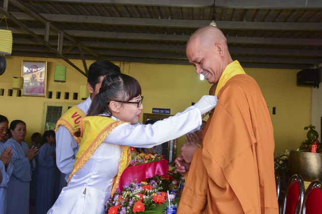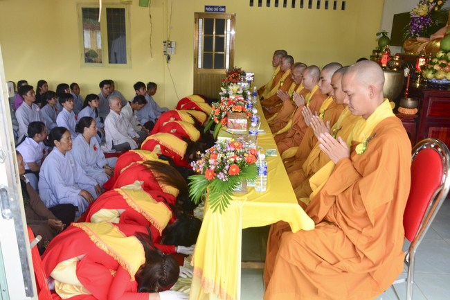 It is the chance to express their pious mind toward their parents. Therefore, though the material facilities of two pagodas were in dissufficientcy, the venerables decisively organized the great Ullambana ceremony with all rituals such as offering of six items, robes, pinning roses.