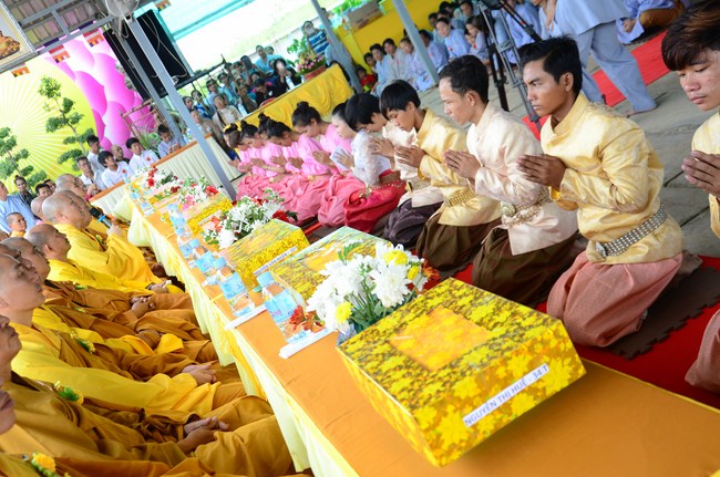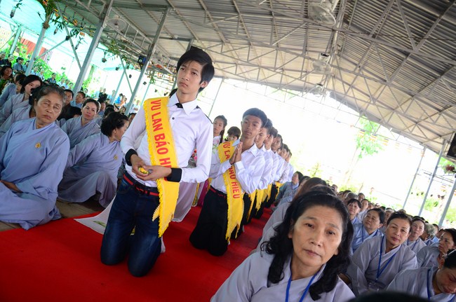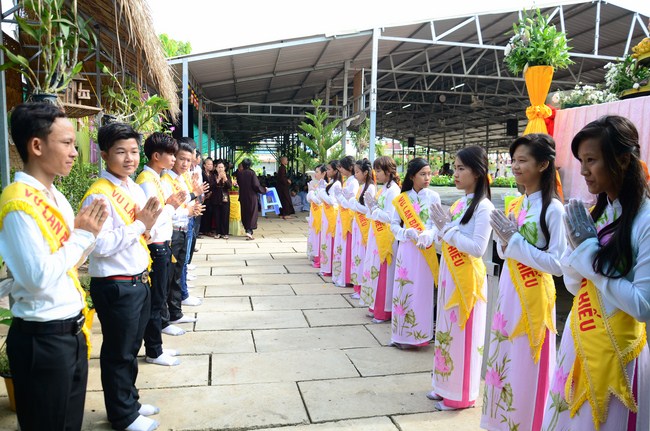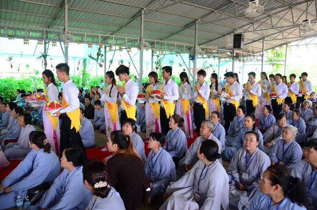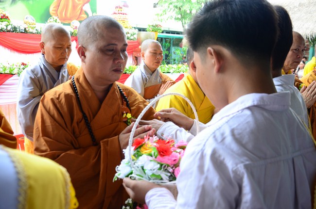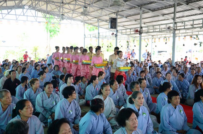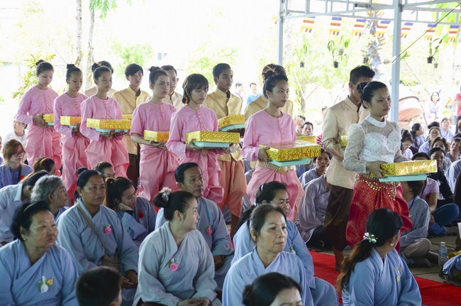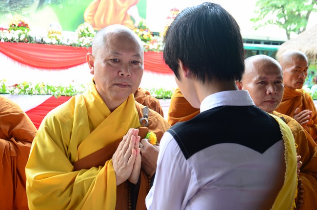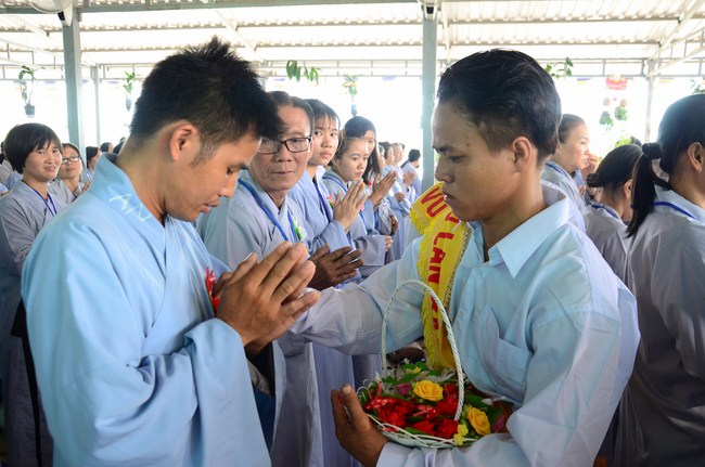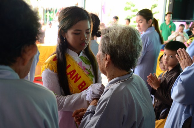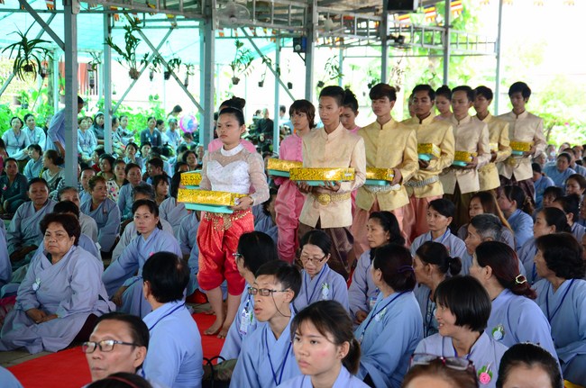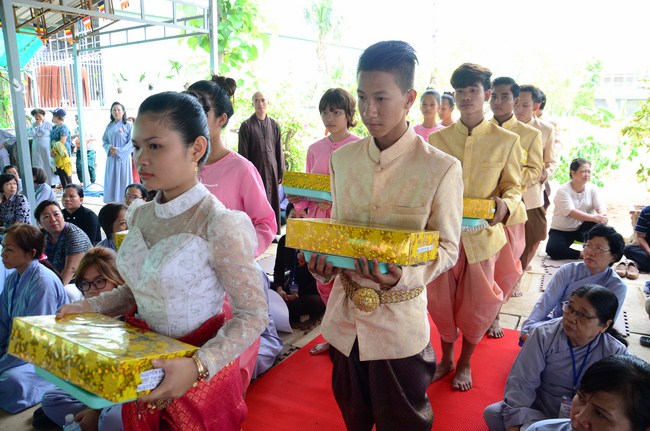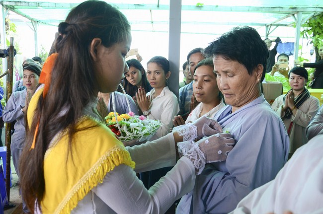 Right after the opening speech made by Venerable Thich Tam Truc, the abbot of Cambodian Hoang Phap Pagoda, the ceremony officially took place. As he said, Ullambana, a filial piety ceremony is a lofty and beautiful festival of Buddhism in particular, and Vietnamese in general. Venerating parents has been a Vietnamese morality as well as Buddhist code of ethics when we affirm Buddhism is the religion that teaches and guides people to practice filial piety.