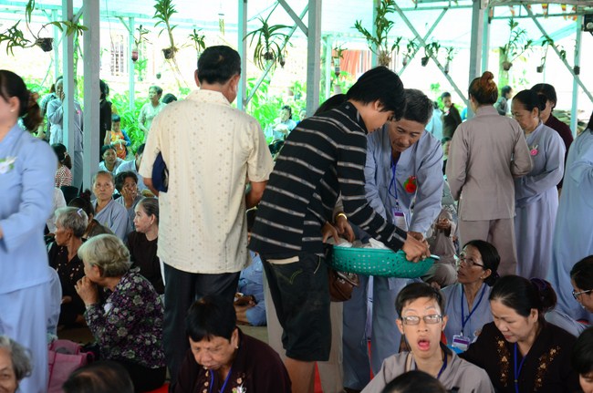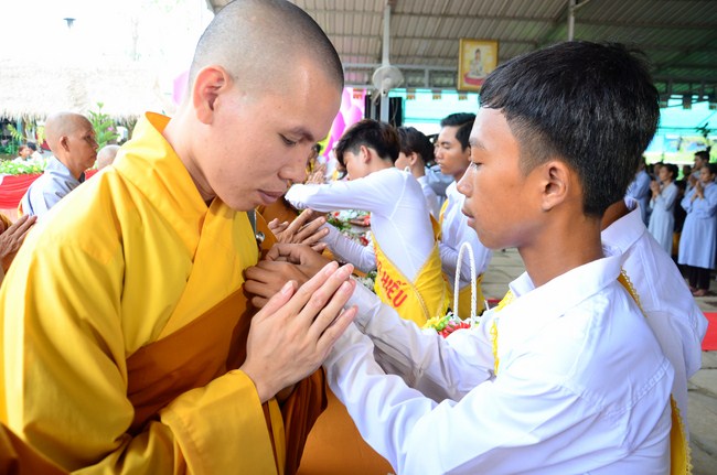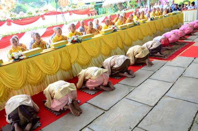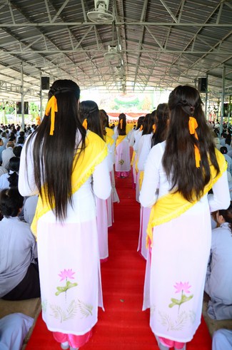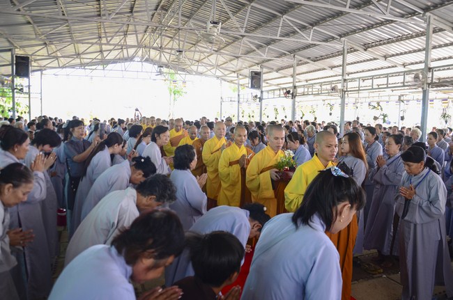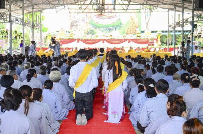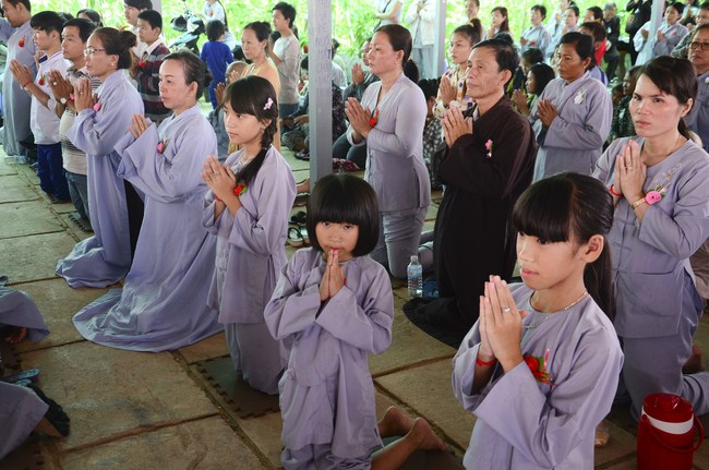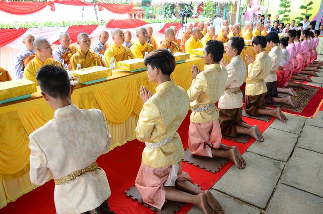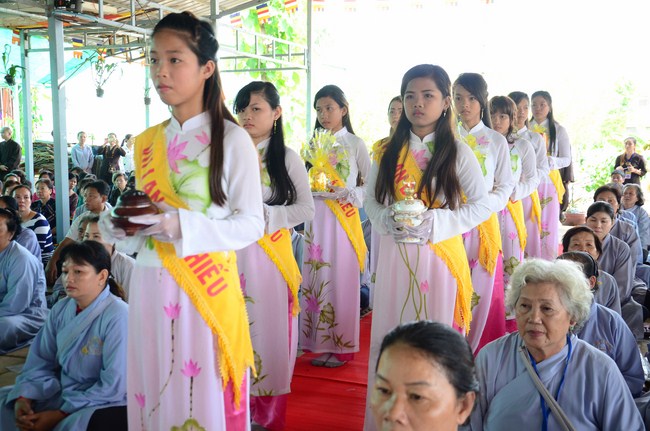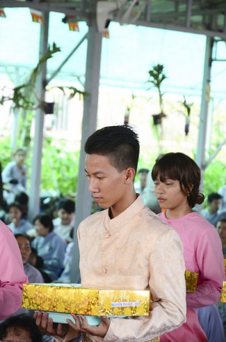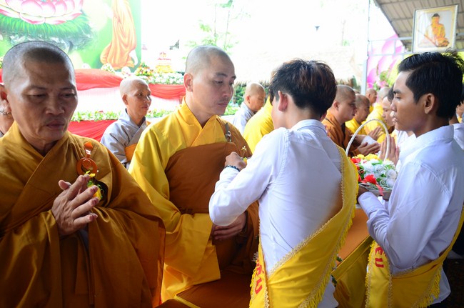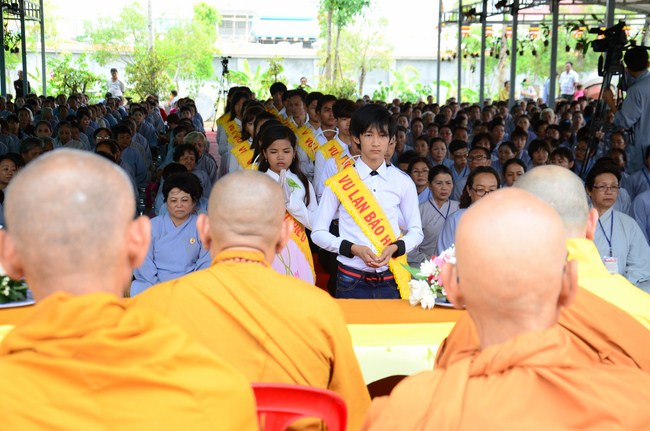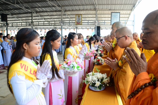Right after the opening speech made by Venerable Thich Tam Truc, the abbot of Cambodian Hoang Phap Pagoda, the ceremony officially took place. As he said, Ullambana, a filial piety ceremony is a lofty and beautiful festival of Buddhism in particular, and Vietnamese in general. Venerating parents has been a Vietnamese morality as well as Buddhist code of ethics when we affirm Buddhism is the religion that teaches and guides people to practice filial piety.
