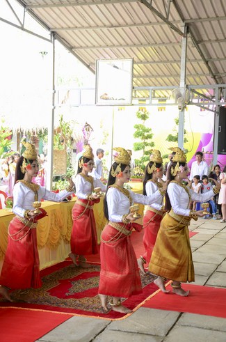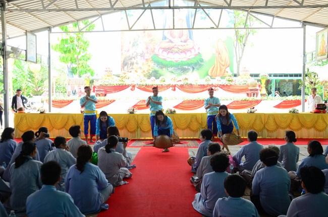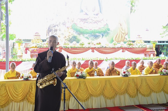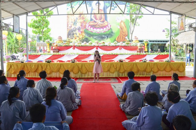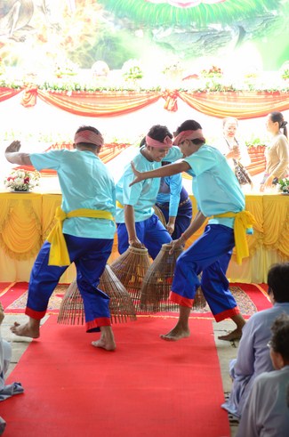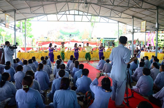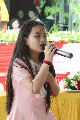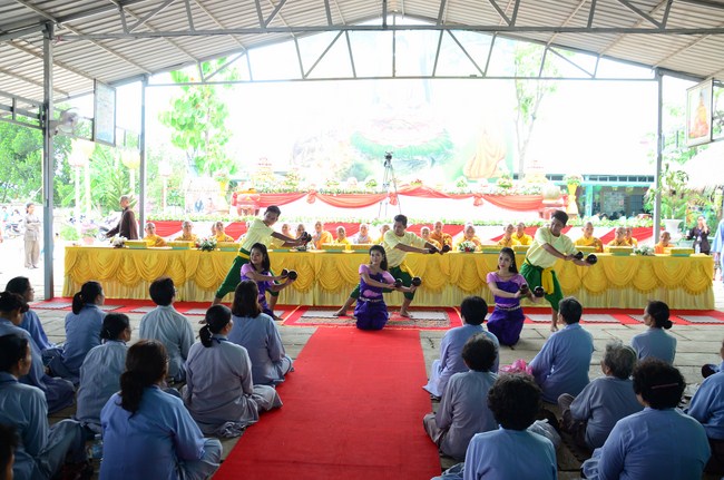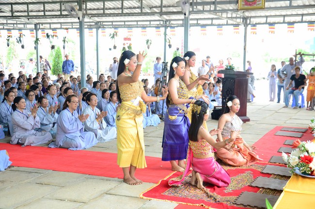 In the program, there was the performance of songs about parent’s love and caring. Monk Tam Tuong performed the song "Mother’s Tears" on the saxophone, little boy Thien Tung, little girl Khanh Linh and little Ngoc Phung sang the songs “Fatherâ€, “Mother†and "I Love Mom" respectively ​​. Especially there was the participation of Cambodian dancers with their graceful traditional performance.