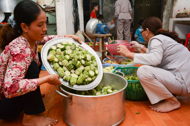 On the permission from Senior Ven. Thich Chan Tinh, the monks and Buddhists of Hoang Phap pagoda came to Quoc Thoi pagoda of the Abbot Thich Tam Hung, An Hoa hamlet, Long Thoi commune, Cho Lach district, Ben Tre province on the August 23rd 2015 (on July 10th, Lunar Goat year) in order to support the work for Ullambana celebration.