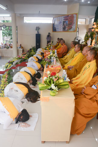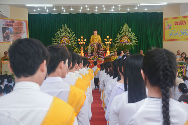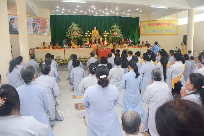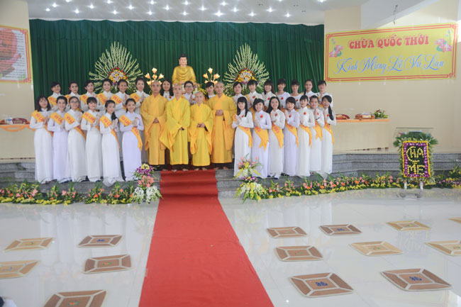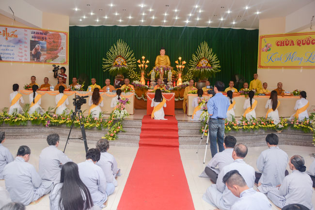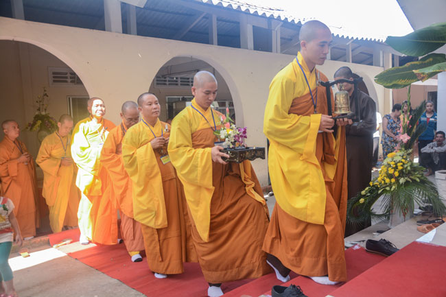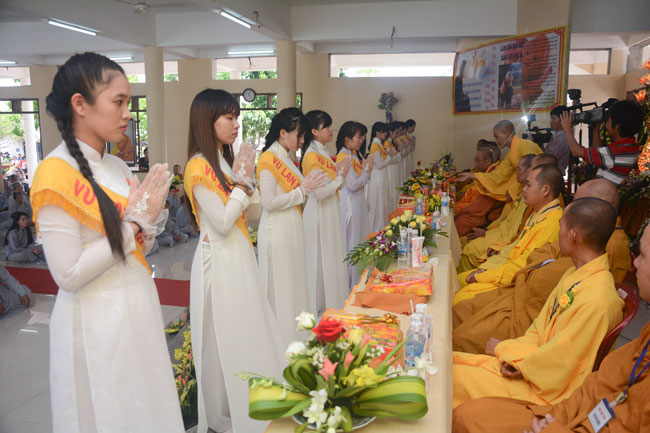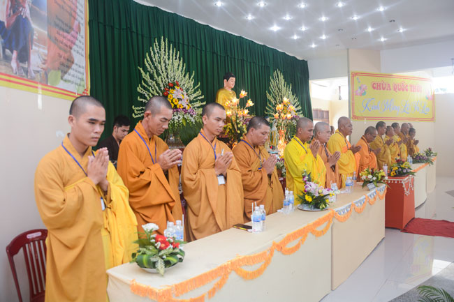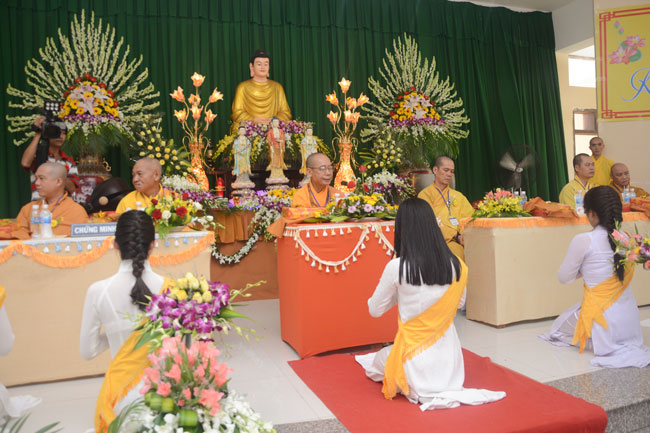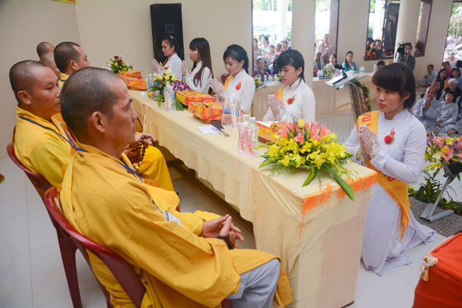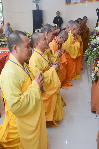 In the spirit of that meaning, the ceremony became solemn and formal under the witness of the Most, Senior Venerables as the demonstrators of Board of Buddhism at Cho Lach District, abbotmonks, nuns from local pagodas, delegates of government levels atLong Thoi commune Cho Lach District, visitors, HCMC and local Buddhists attended the ceremony.