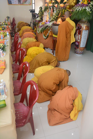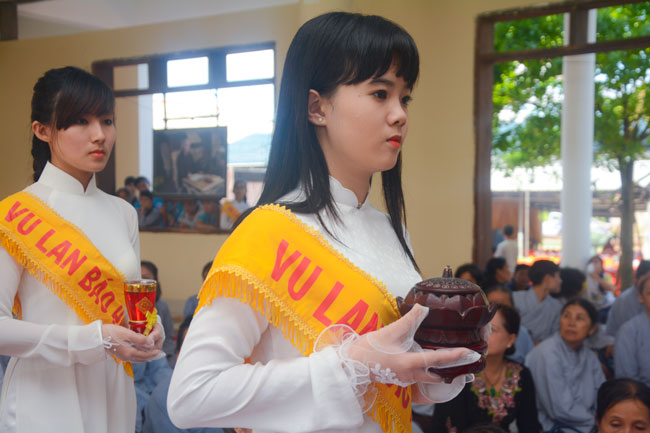In the end,all theVen. monks andthe attendeestogether offered incence to Buddhas andchanted the sutra named Ullumbana,which prayed ancestors to be reborn and current parents to have blessings, the realm whole of human and heaven together toward Dharma Buddha.