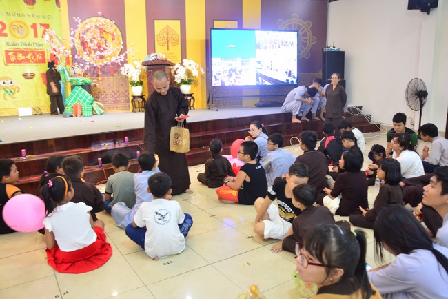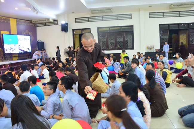 On behalf of the Senior Venerable Abbot and Hoang Phap Sangha, Veverable Thich Tam Do sent each child a gift and a red package of “li xi†for new year. Blissful air flooded in the springy environment and on the faces of kids and their parents.