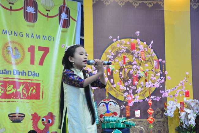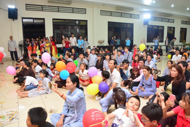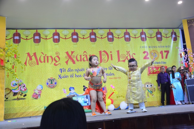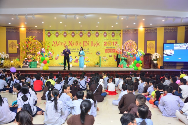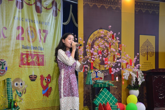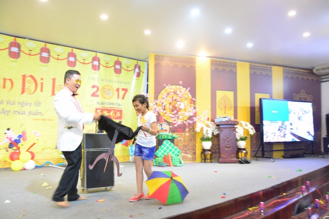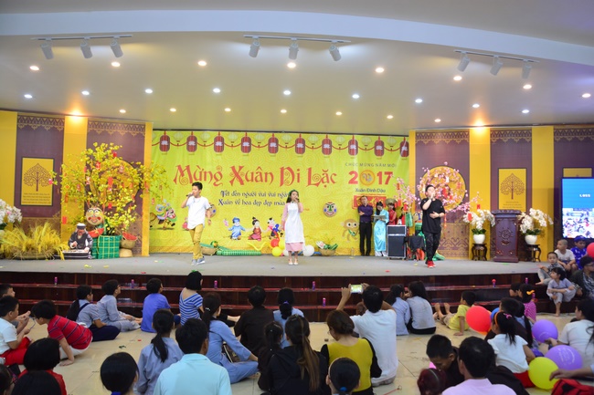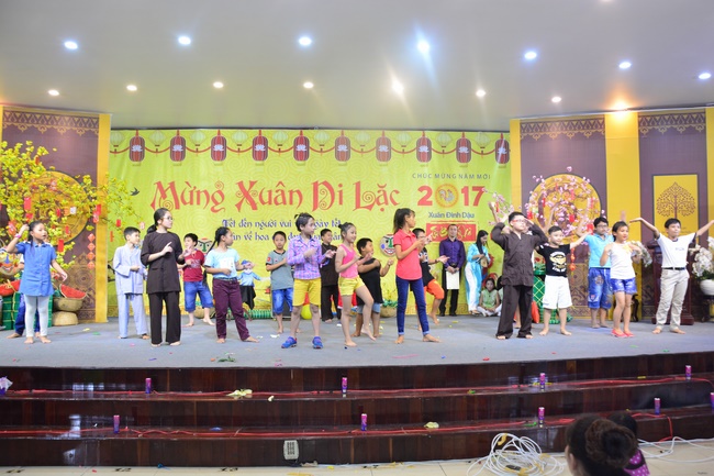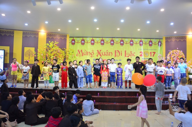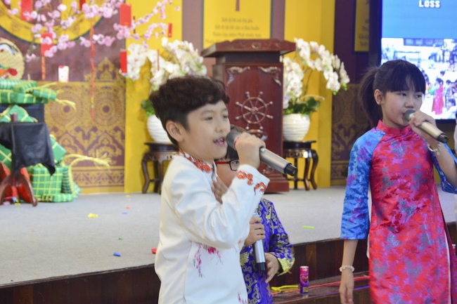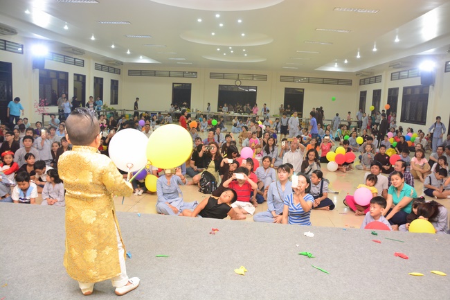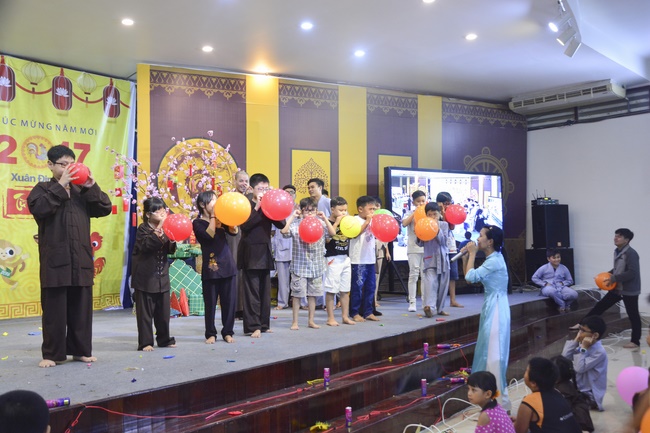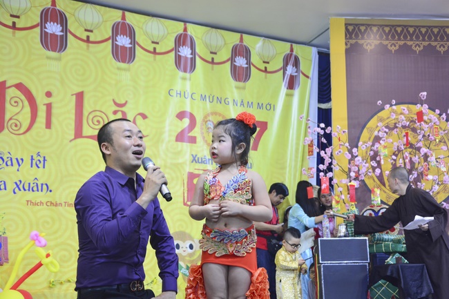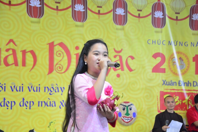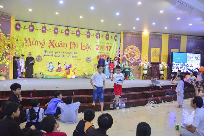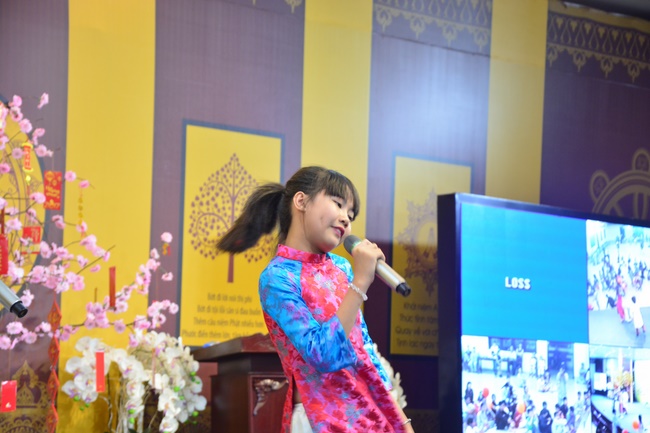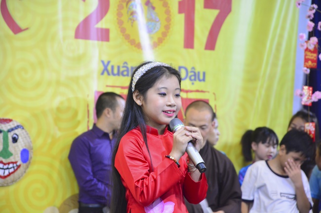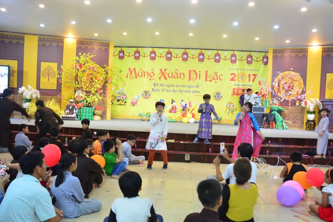 In order to create a sound playground for children, despite mountains of works to get through for new year, monks and Buddhists at Hoang Phap pagoda saved their time to prepare year-end party and music show for children. With many vegan dishes that were delicious and well decorated, children had a good time enjoying the entertainment with baby singers. The program had the contribution from famous baby singers as:“Kutin, Nguyet Thu, Thuy Binh, Mai Anh, Mai Chi Cong, Bao Nghi, Bao Khuong, Ku Bo, Minh Chien, Nha Thy, Nhu Y, Bao An, Ben Lee, Cao Phi, To Trung Tin, To Anh Thu, Nhat Anh, Ngoc Han, Thien Phuc, Kha Han, and so onâ€, with many songs of traditional spring in Viet Nam and the love to homeland. During the program, participants had the opportunity playing folk games and communicating with the singers.