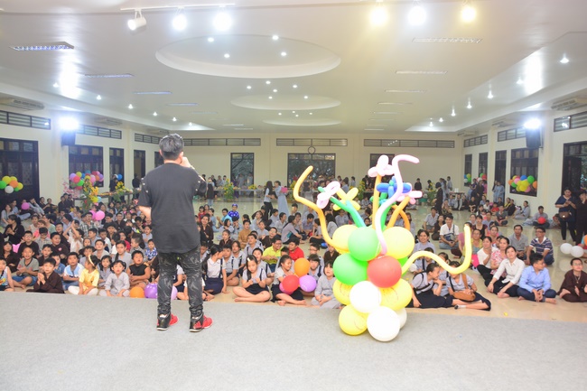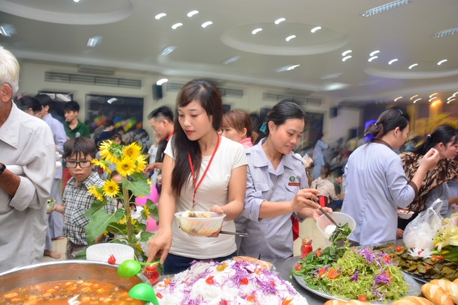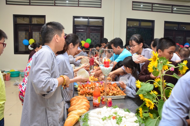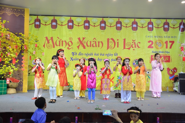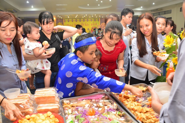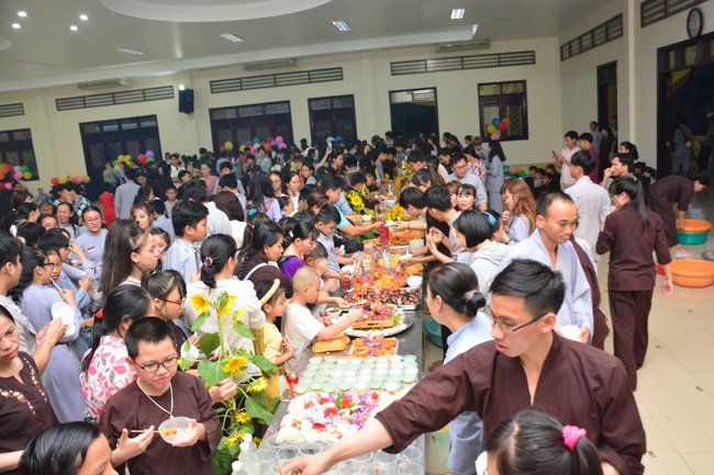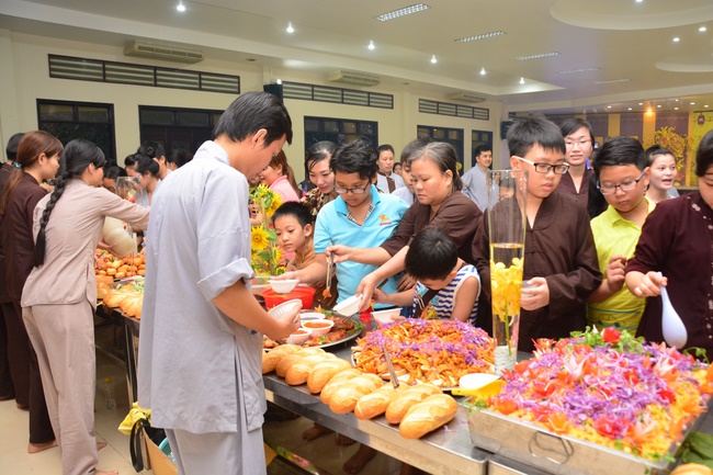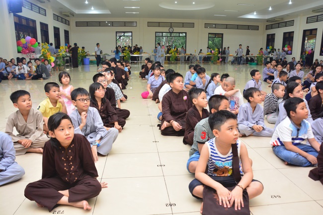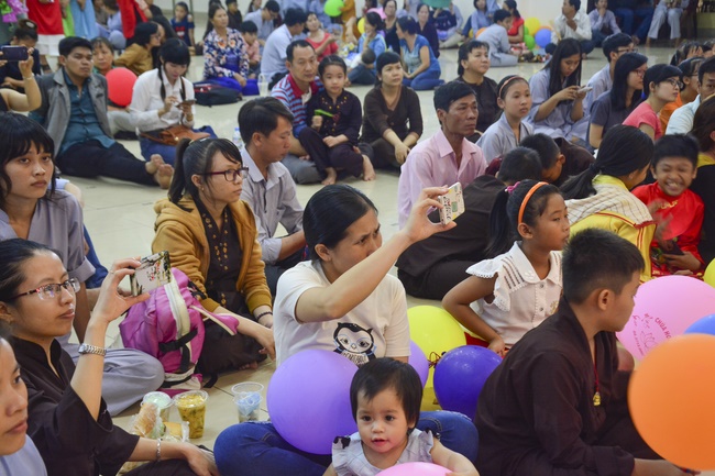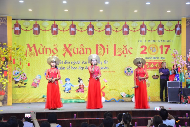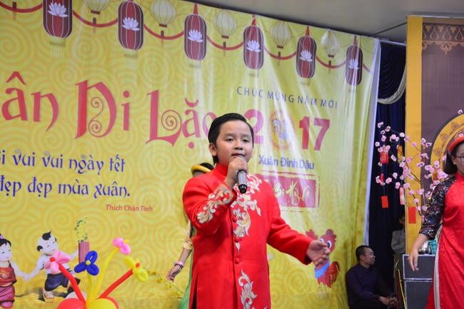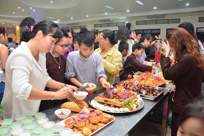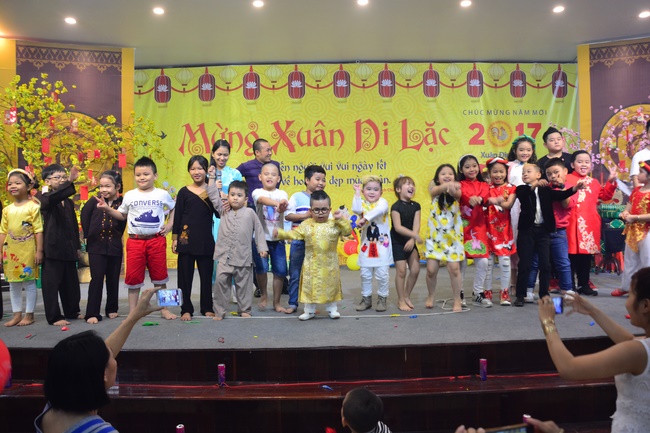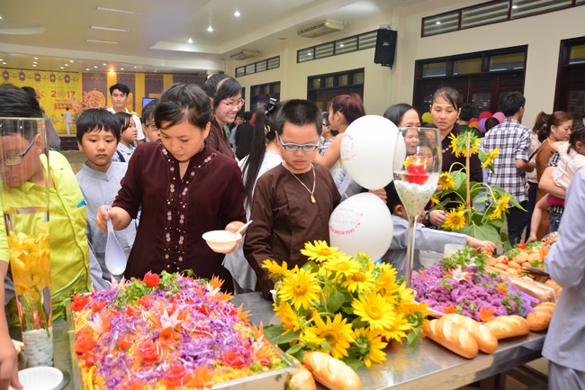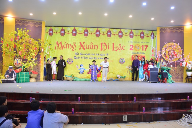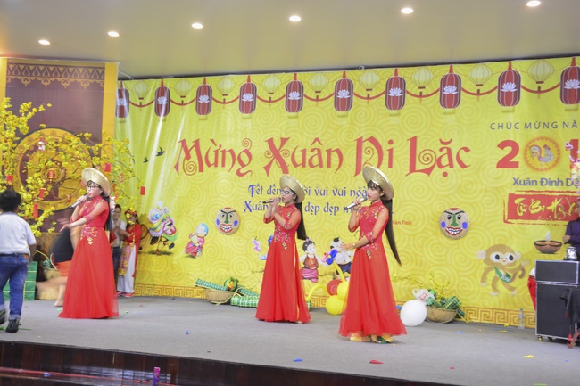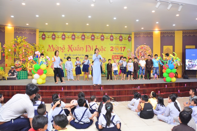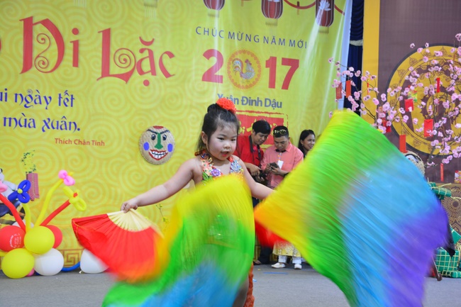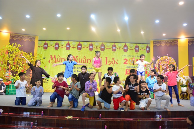 In order to create a sound playground for children, despite mountains of works to get through for new year, monks and Buddhists at Hoang Phap pagoda saved their time to prepare year-end party and music show for children. With many vegan dishes that were delicious and well decorated, children had a good time enjoying the entertainment with baby singers. The program had the contribution from famous baby singers as:“Kutin, Nguyet Thu, Thuy Binh, Mai Anh, Mai Chi Cong, Bao Nghi, Bao Khuong, Ku Bo, Minh Chien, Nha Thy, Nhu Y, Bao An, Ben Lee, Cao Phi, To Trung Tin, To Anh Thu, Nhat Anh, Ngoc Han, Thien Phuc, Kha Han, and so onâ€, with many songs of traditional spring in Viet Nam and the love to homeland. During the program, participants had the opportunity playing folk games and communicating with the singers.