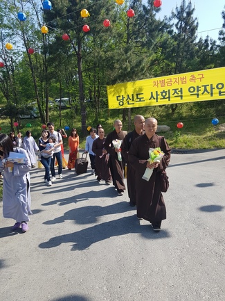 After rituals for Vesak and the abbot’s speaking, Venerable Thich Tam Dao gave a speech congratulating the ceremony. On behalf of Vietnamese Buddhists in Jeonchu city, he sent his gratefulness to the abbot and sangha of Cham Joun Uri pagoda for their kindness supporting worship place for Vietnamese Buddhists practicing.