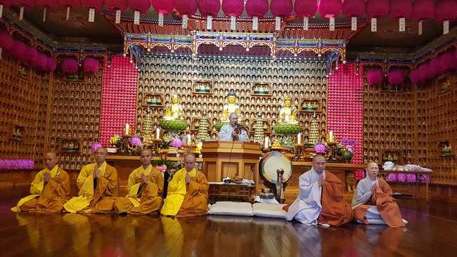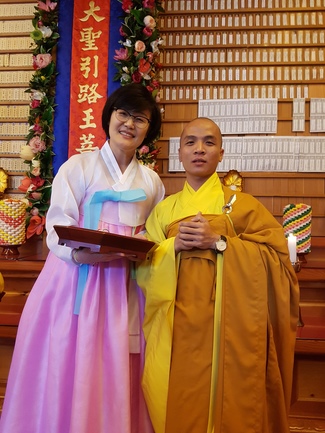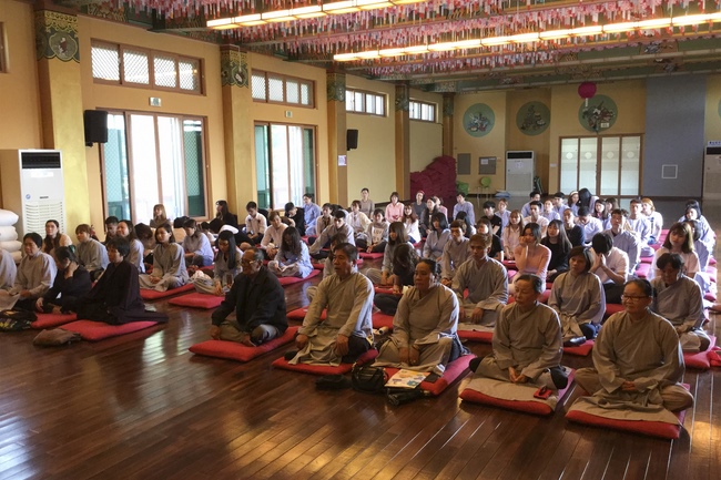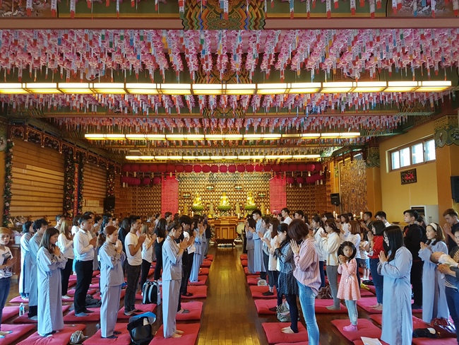 On May 03, 2017 (April 08, lunar calendar), based on the invitation of Buddhists from Jeonchu city, South Korea, Venerable Thich Tam Dao and Hoang Phap delegation came to Cham Joun Uri pagoda to attend Vesak ceremony and delivered Dharma talk to Vietnamese Buddhists there.