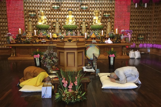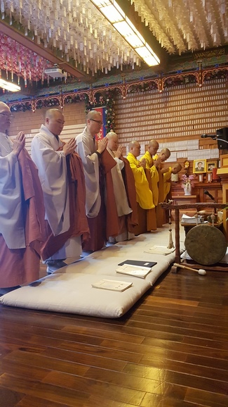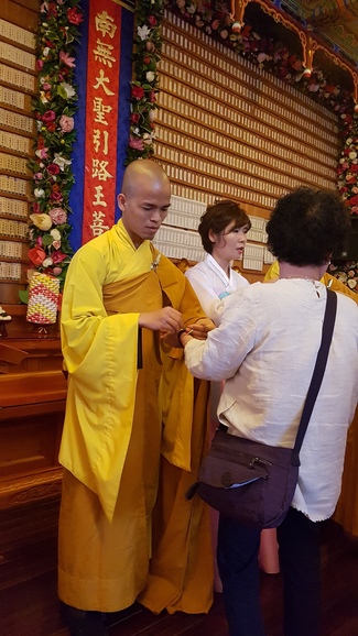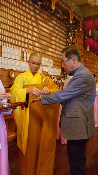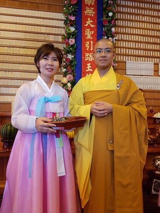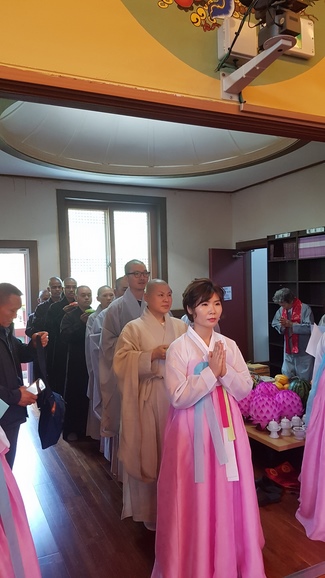 In the morning, the ceremony was solemnly celebrated in the main hall of the pagoda with the participation of the abbot and sangha of Cham Joun Uri pagoda, Hoang Phap clergy delegation, and Korean/Vietnamese Buddhists living, working and studying there.
