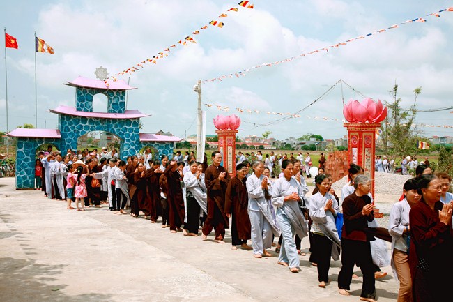 Monks and nuns of the Vietnam Buddhist Church in Thanh Hoa province attended to prove the ceremony. In addition, there were the presence of local authorities at all ranks, and over 1000 Buddhists inside and outside the district. Despite the lack of facilities, Junior venerable Thich Tam Hung and the monks did try hard to celebrate the ceremony successfully.