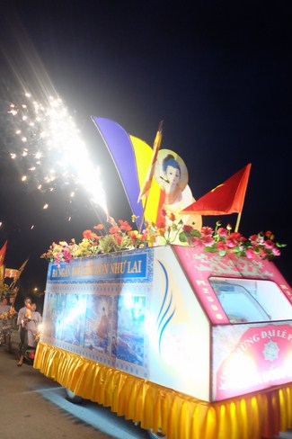 In the afternoon, monks and Buddhist released living creatures as a work of meritand recitations of Sutra. Then, everyone paraded flower lantern carriages to celebrate the Buddha's birthday. The ceremony ended in the joy of everyone.