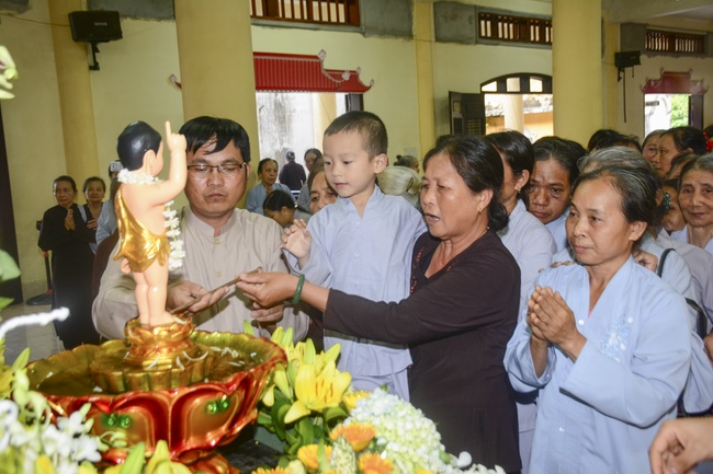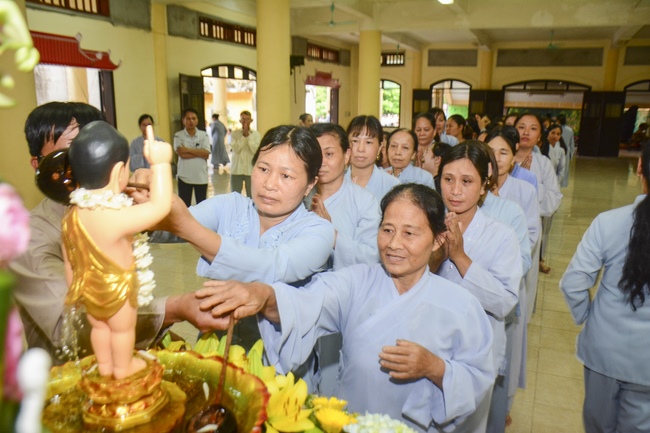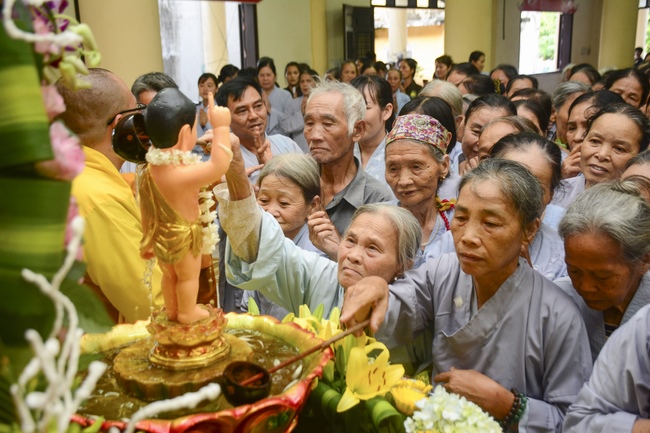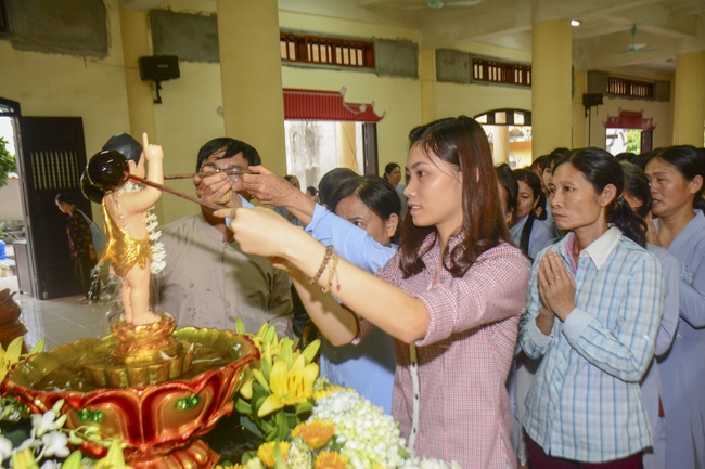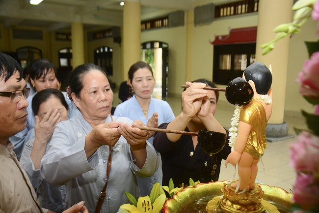 After the sermon, Buddhists were instructed to follow the solemn ceremony of Vesak day: washing the Buddha’s statue, citing sutras, reciting Buddha’s name.