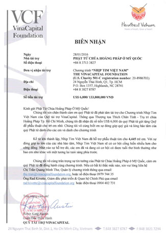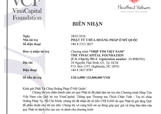 On this occasion, represents of Hoang Phap Buddhists in the US, monks gave the amount of 6.000 USD for fund to support the heart operation for children. With this amount, 5 kids will be scheduled undergoing surgery to have a strong healthy heart.