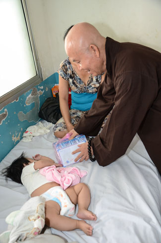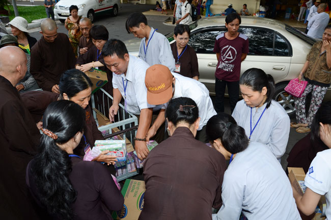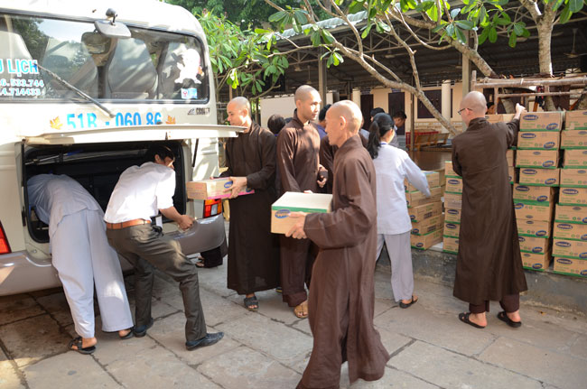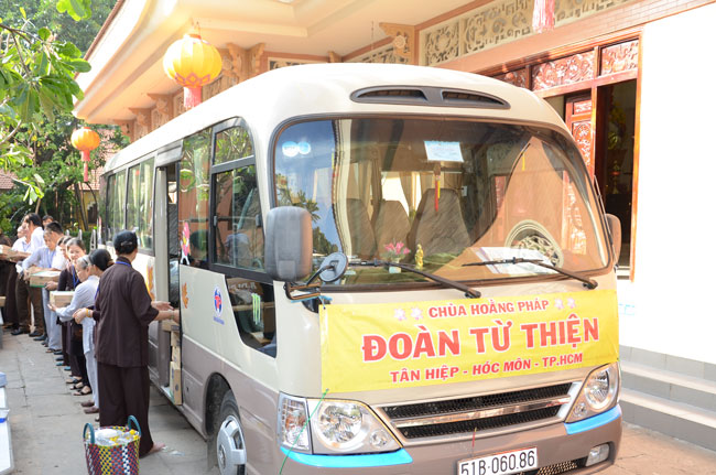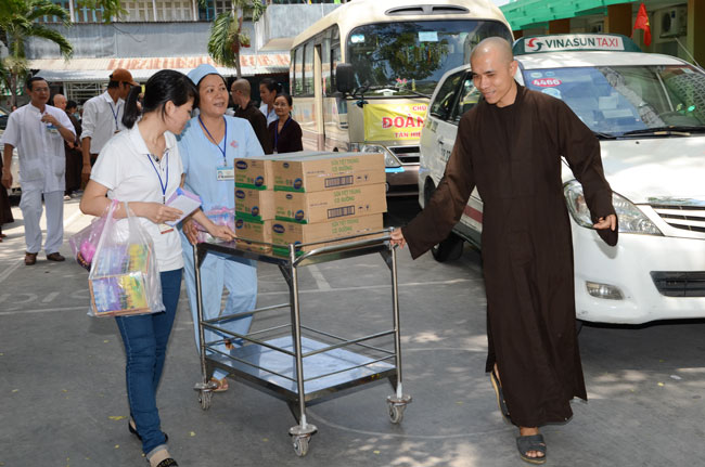 Continuing for charity trip to welcome Vesak Day 2558. In the morning of April 24th (Horse Year 01st April), the Monks and Buddhists of Hoang Phap pagoda visited and donated gift at three hospitals : Nhi Dong 1, Binh Dan, Ung Buou – HCMC.
