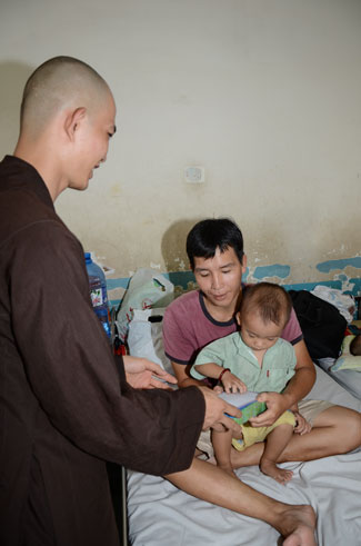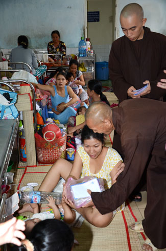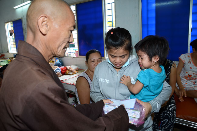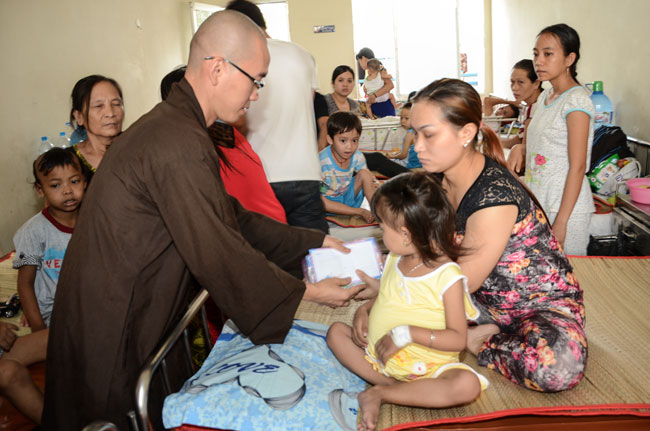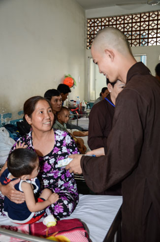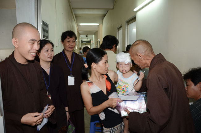 The first spot was Nhi Dong 1 Hospital, 200 gifts (150.000 VND\r\nfor each) were offered to 200 poor children patients of gastrointestinal,\r\nkidney, dengue fever, burnt. The total value there is 30 million VND. Extra 25\r\nkidney children patients out of list were donated 2,5 million VND (100.000 vnd\r\nfor each) by the buddhists.