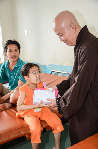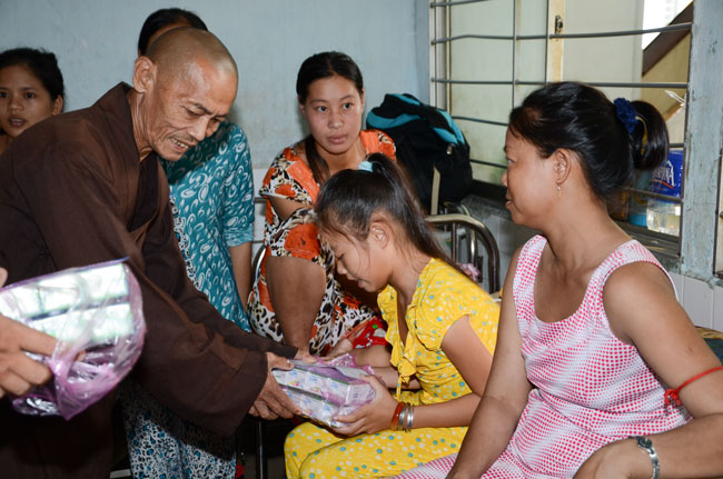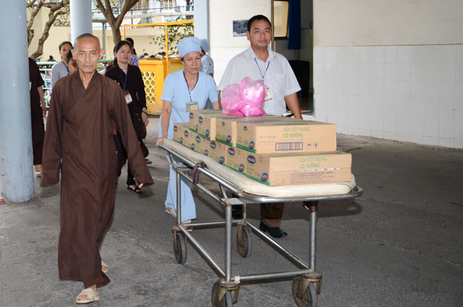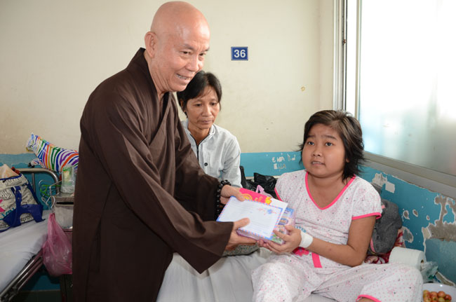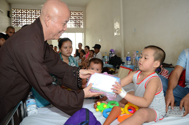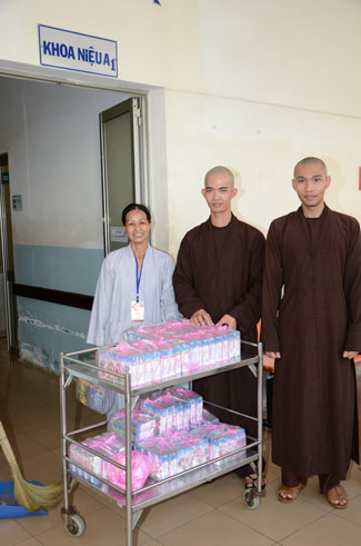 At Tumor and Lump hospital, 140 gifts valued 21 million dong\r\nwere donated to 140 patients in 1 and 4 internal department. In pediatrics, 160\r\npatient children were granted a block fresh milk for each. They were sent 50\r\naudio equipments of Buddha reciting and strings of beads.