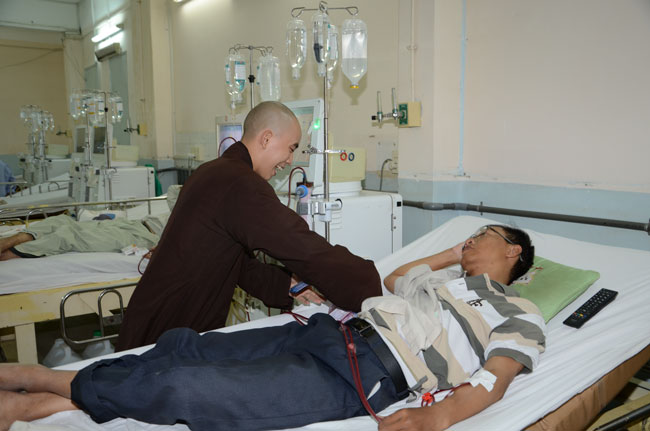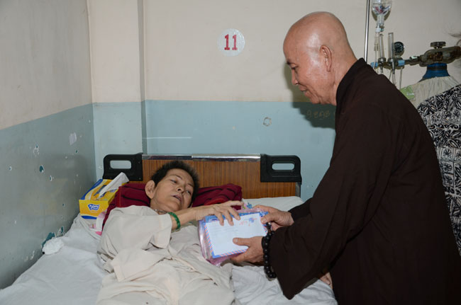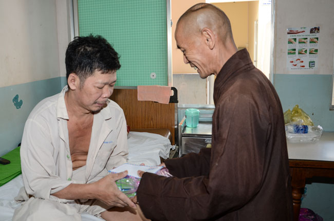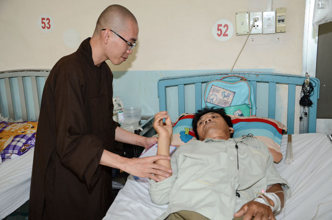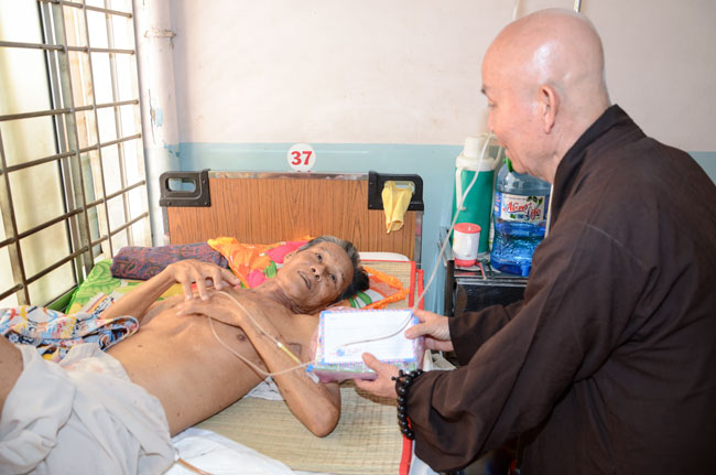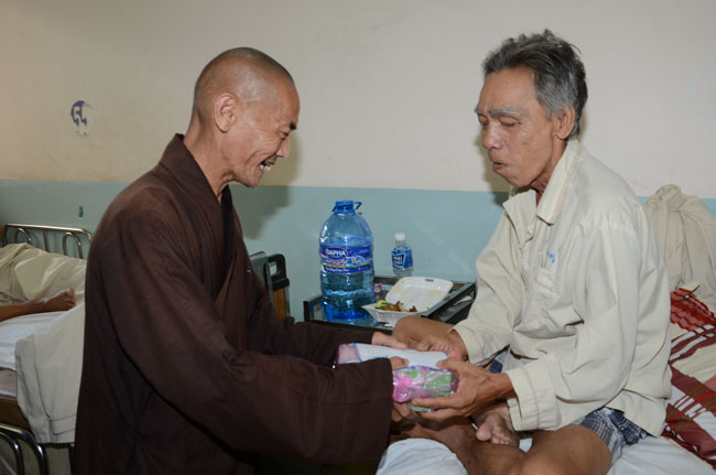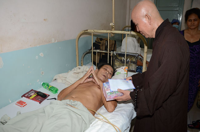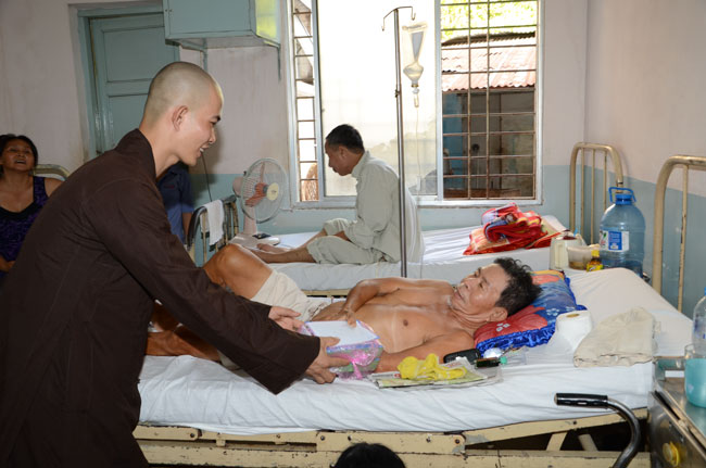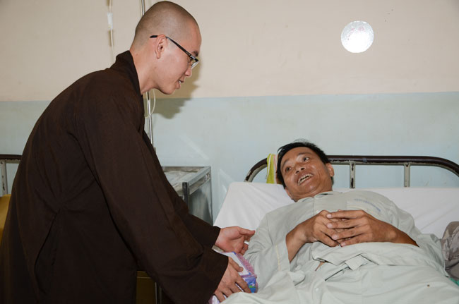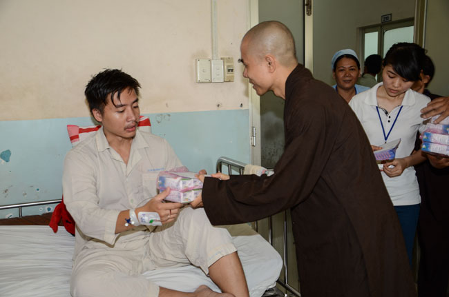 Next was Binh Dan hospital with 193 gifts (150.000 VND/each)\r\nworth of 28.950.000 VND given to 193 poor patients to the department of general\r\n1,2,3; urinary A + B, general internal and dyalysic. Patients were sent 30\r\naudio equipments of Buddha reciting and and strings of beads.