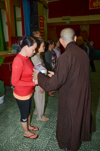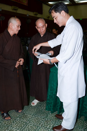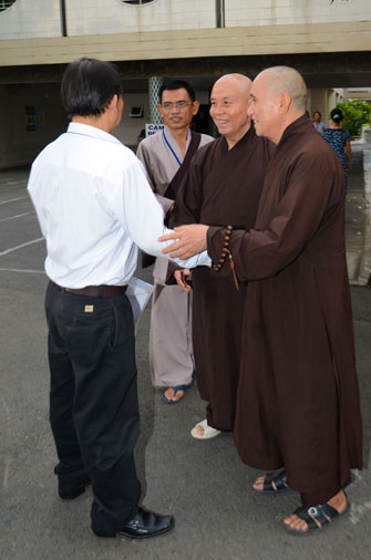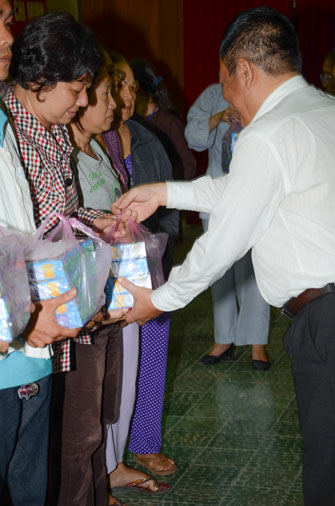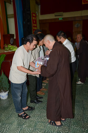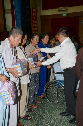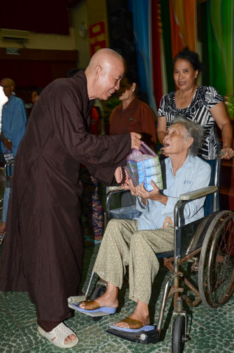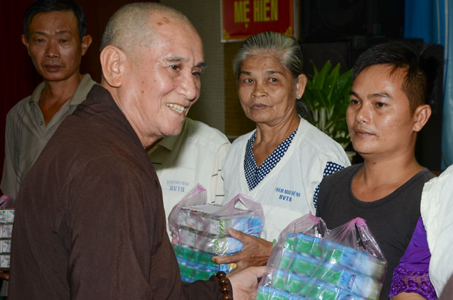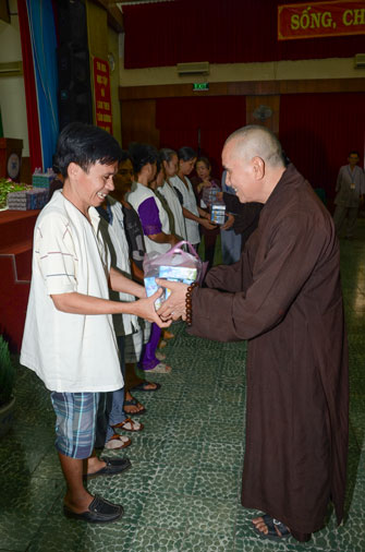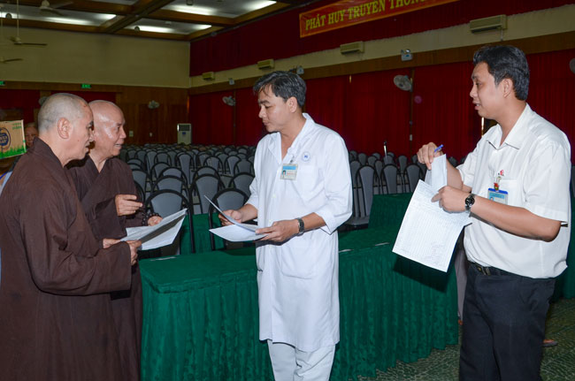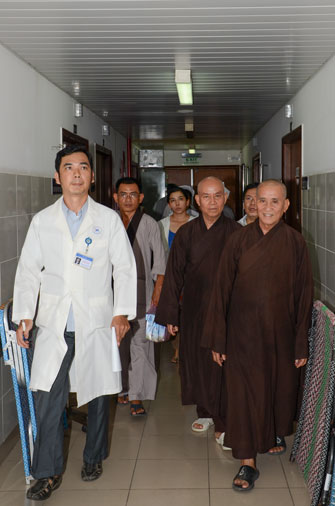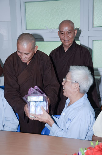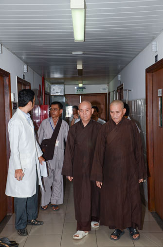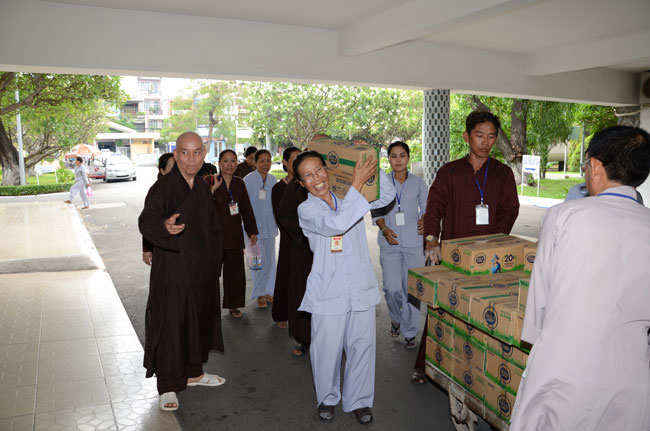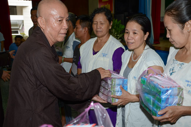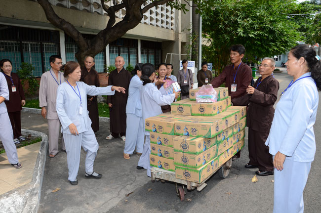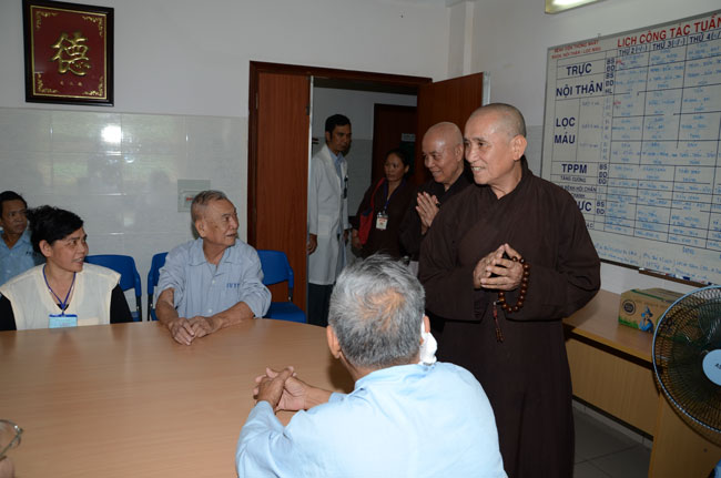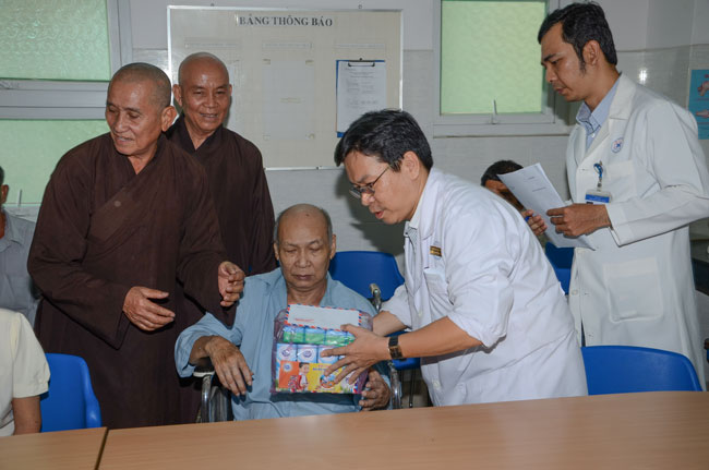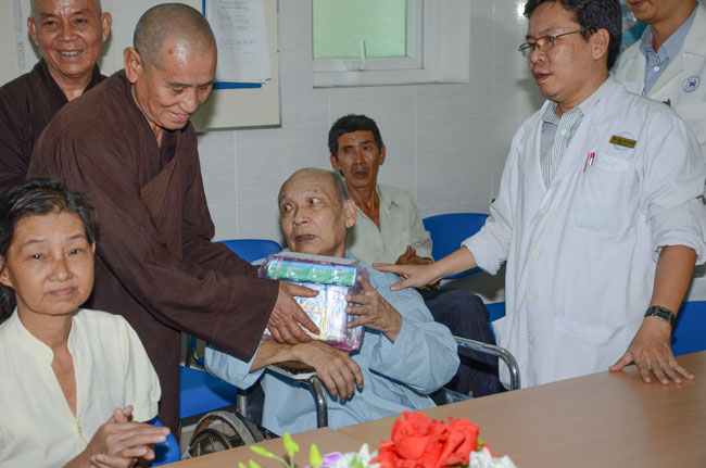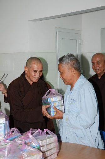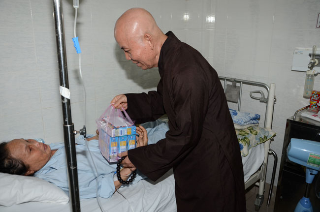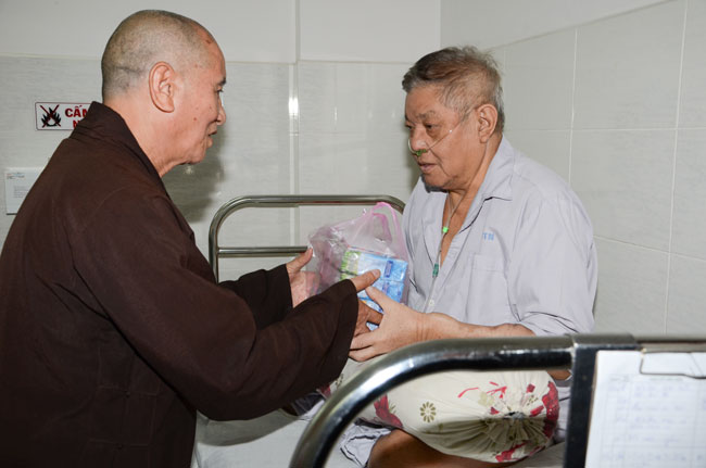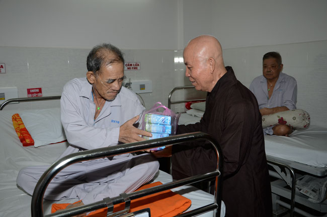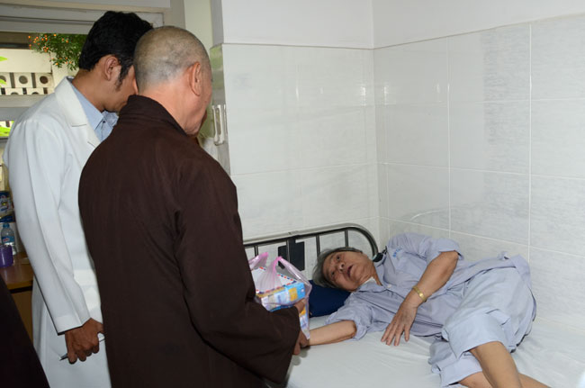 Instructed by Sen. Ven. Thich Chan Tinh, the abbot of Hoang Phap Pagoda, on this Buddha’s Birthday occasion (2558 – 2014), in the afternoon of Apr 15th, 2014, Monks of Hoang Phap Pagoda, under the instructions of Thich Tam Thuan monk – chief of the group – visited and gave gifts to patients at Thong Nhat hospital of Ho Chi Minh City.