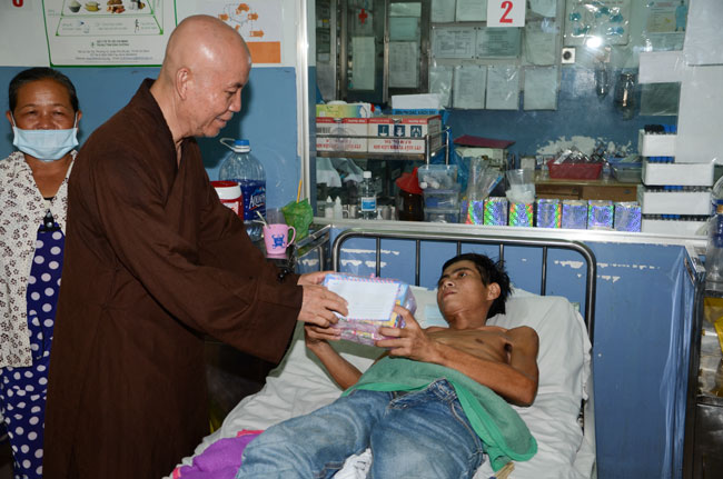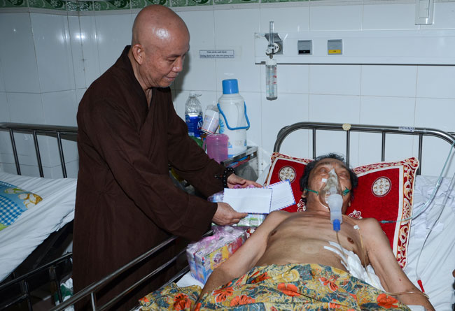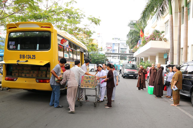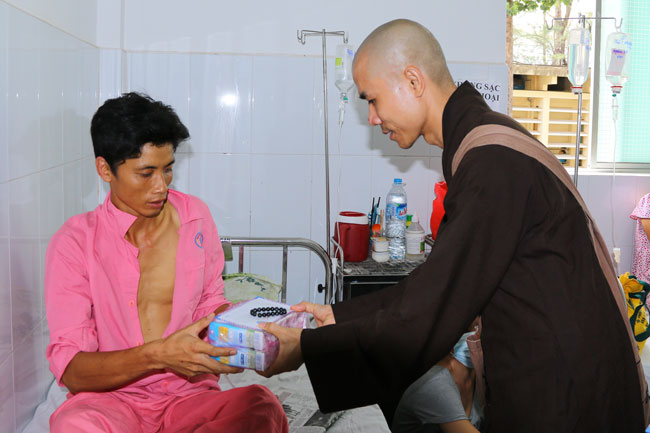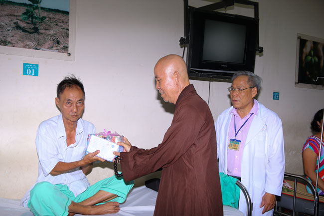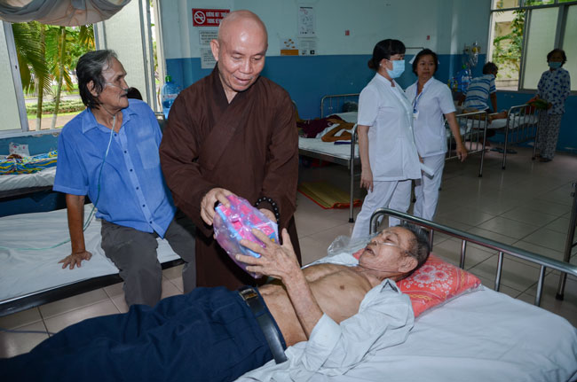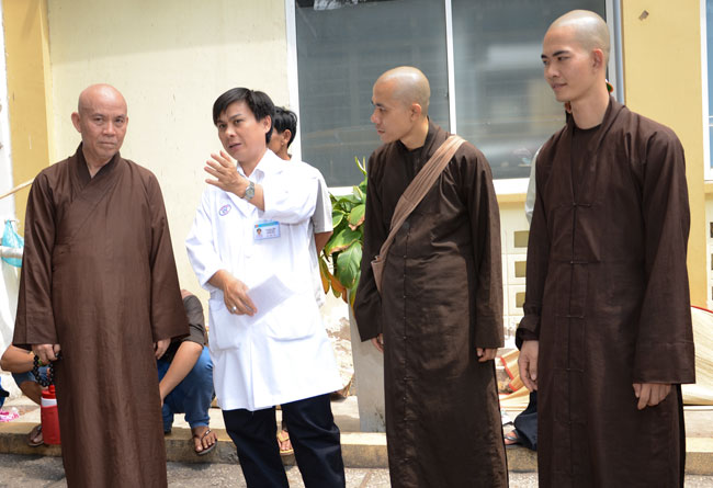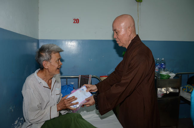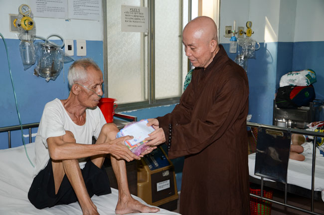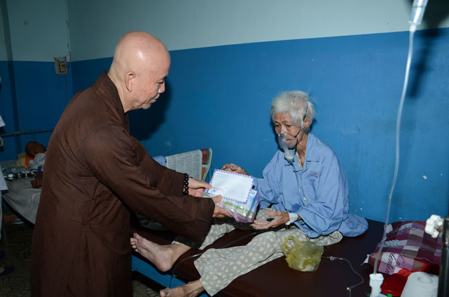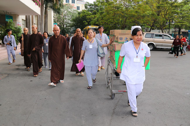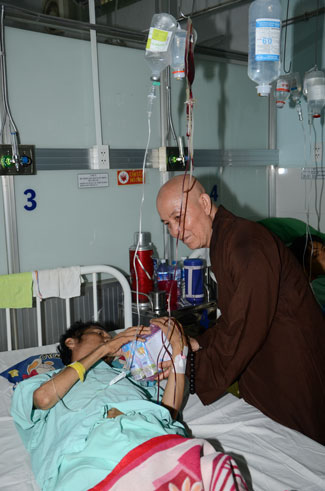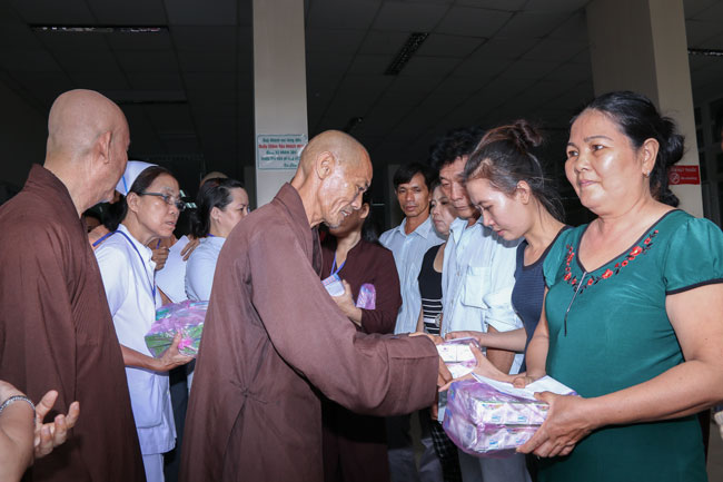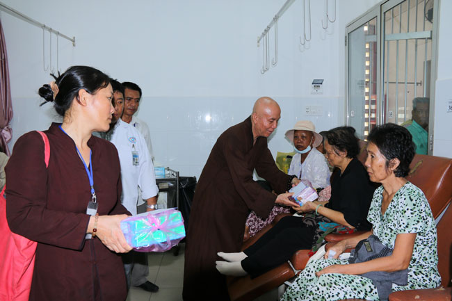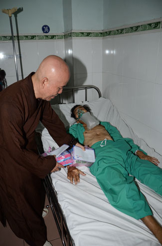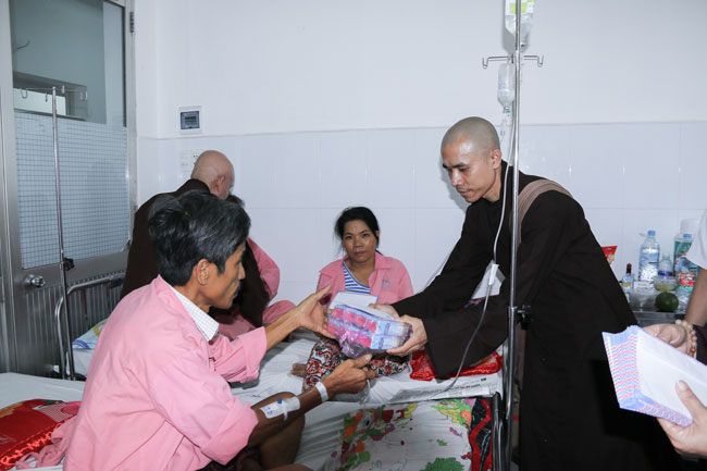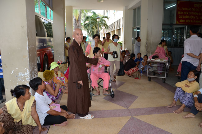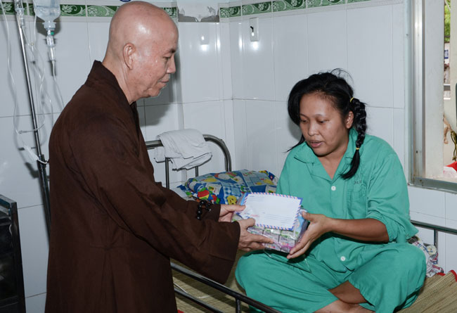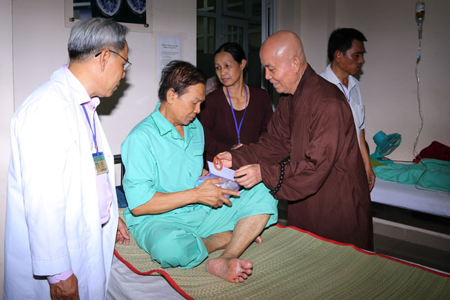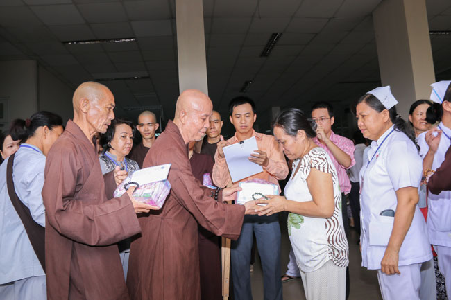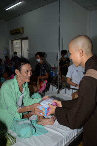 In the morning of April 28 th, 2014 (Lunar, March 29th, Horse Year), in the instruction to Abbot Senior Ven. Thich Chan Tinh, the monks and Buddhists of Hoang Phap pagoda visited poor patients in three hospitals of 115, Cho Ray, Pham Ngoc Thach in Ho Chi Minh City.