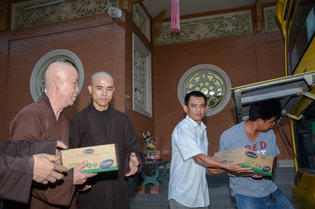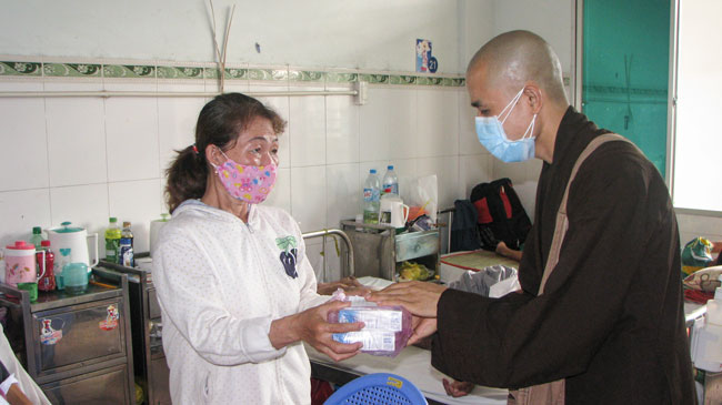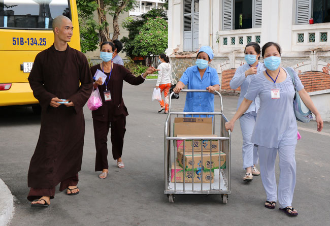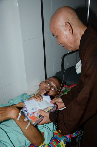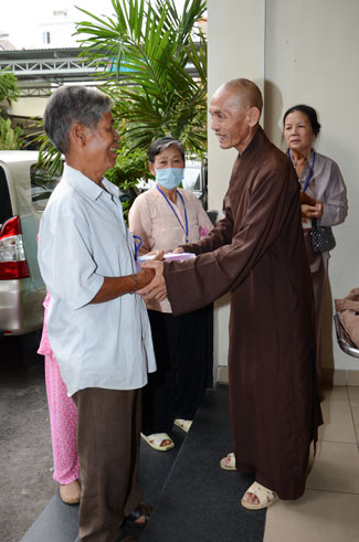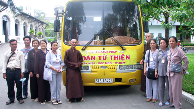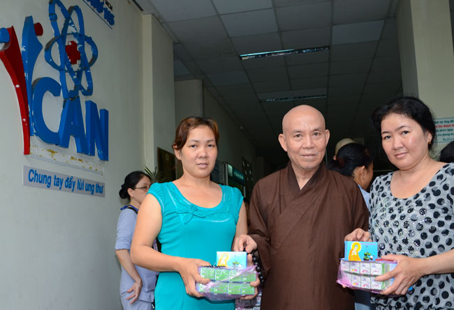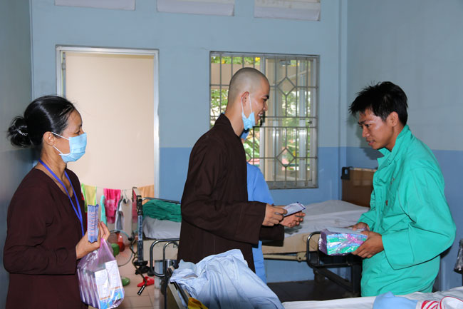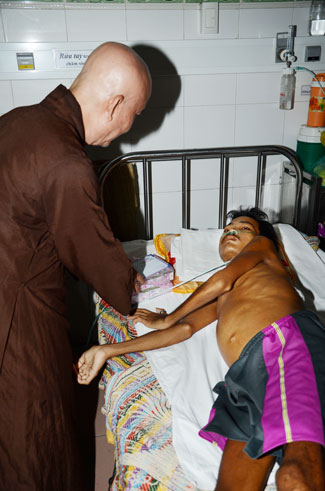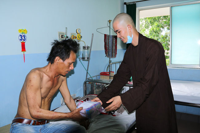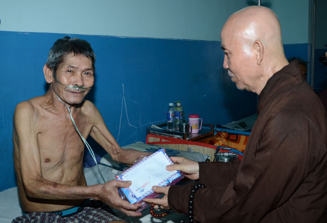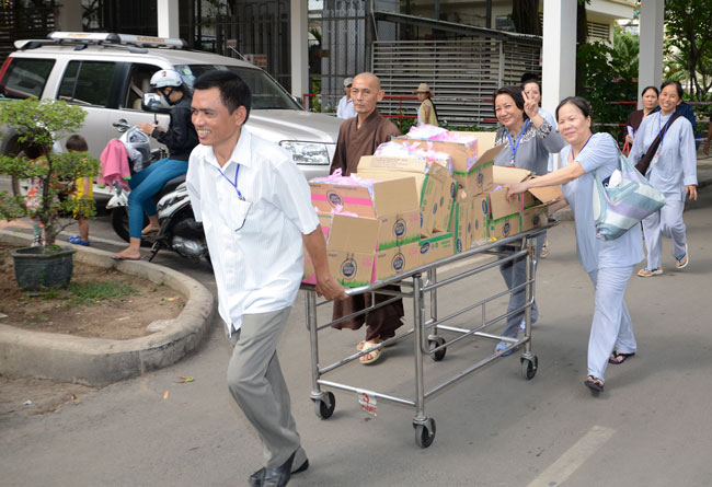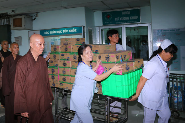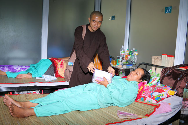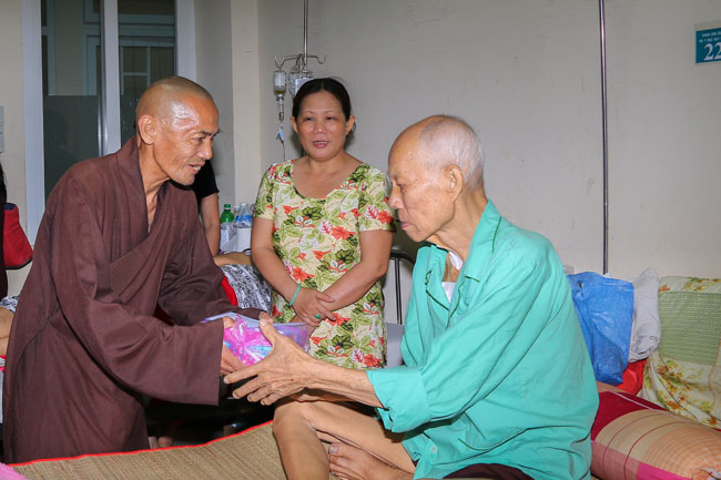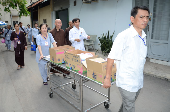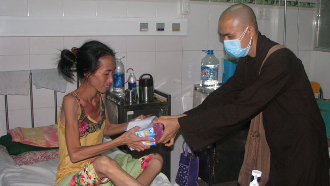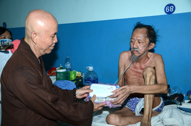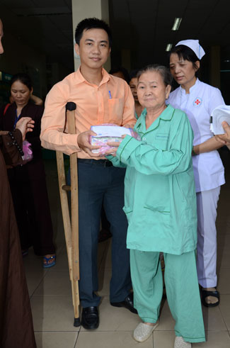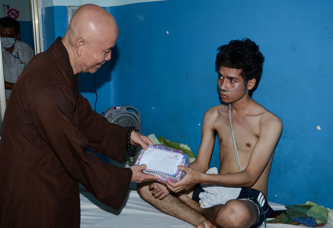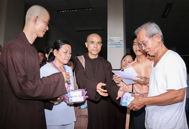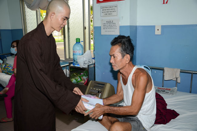 In the morning of April 28 th, 2014 (Lunar, March 29th, Horse Year), in the instruction to Abbot Senior Ven. Thich Chan Tinh, the monks and Buddhists of Hoang Phap pagoda visited poor patients in three hospitals of 115, Cho Ray, Pham Ngoc Thach in Ho Chi Minh City.