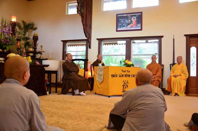 In the spirit of openness and brethren-hood, the delegation got the warm welcome from the Most Venerable Abbot Thich Nguyen An. Via some Buddhism stories, the two abbots talked about some aspects of domestic and overseas Dharma preaching. It is known that Senior Venerable Thich Nguyen Minh from Germany also accompanied on this trip.