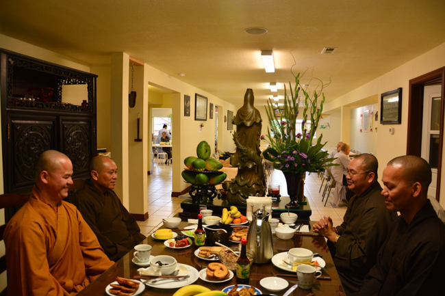 In the afternoon, the delegation kept on its travel visiting Truc Lam Minh Chanh Monastery in Renton. During which, Senior Venerable Thich Chan Tinh had a brief Dharma talk as well as sent his regards to Buddhists there. The abbot of the monastery had a warm welcome to the delegation and invited everyone a visiting tour around the monastery.