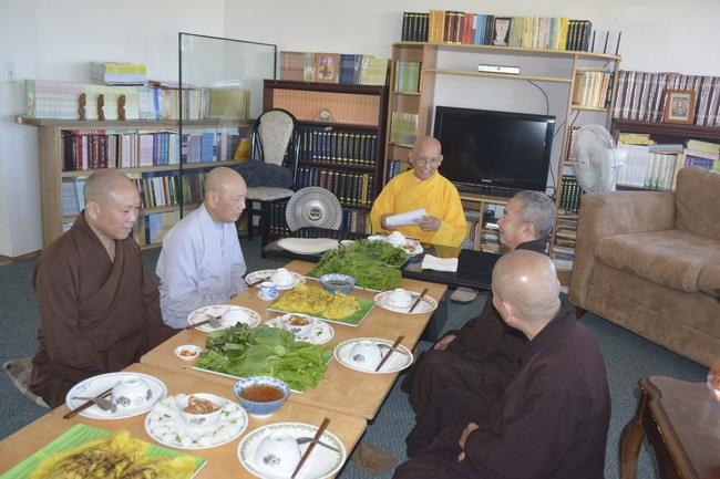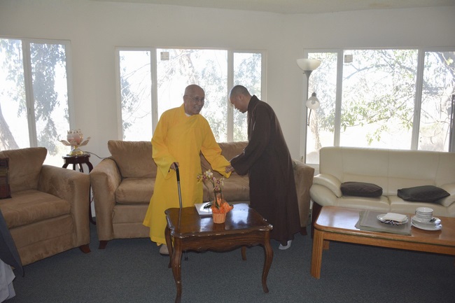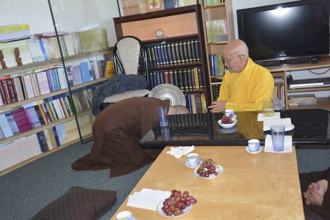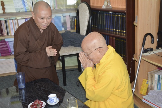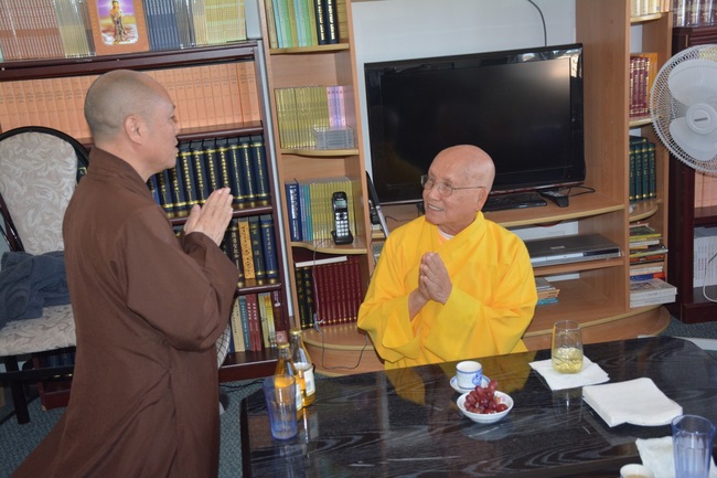 In the morning, the Venerable visited his teacher, Master\r\nMonk Thich Thang Hoan who taught him when he was a trainee monk.