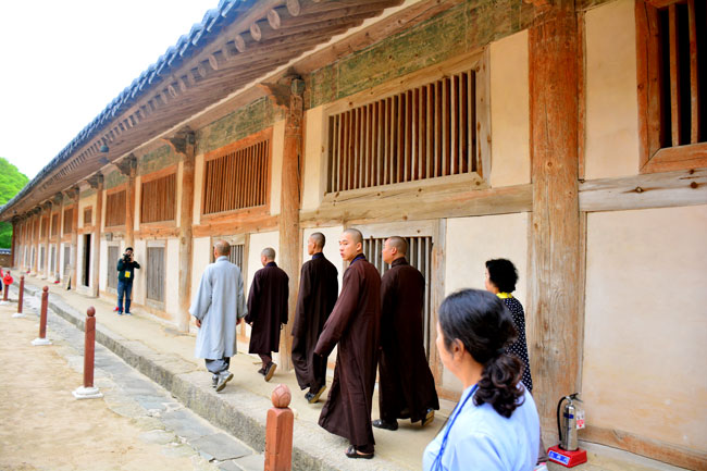 Next, the group went to Kyongnam Habcheongu province to visit Heinsa Pagoda in the area of the Korea National Park. Heinsa Pagoda is recognized as the World Cultural Heritage because of its saving the Korea’s large sutra Store. This place contains the whole of Korea’s sutras, preserved 84,000 sets of dharma. All sutra storing has 81,230 wooden - doctrine texts, each of them being 70cm width, 20cm height as well as written 52,000,000 words.