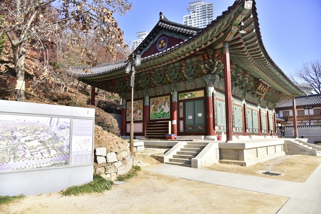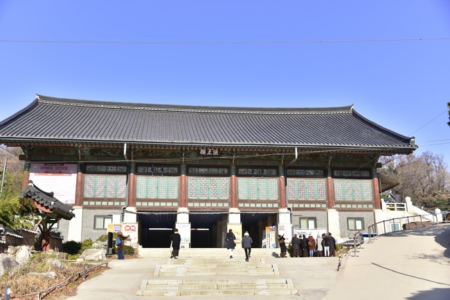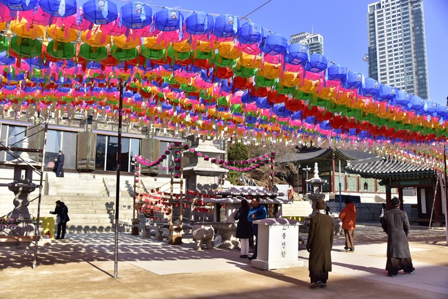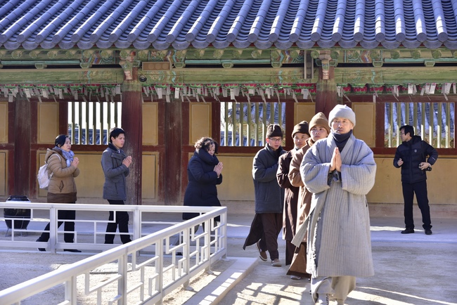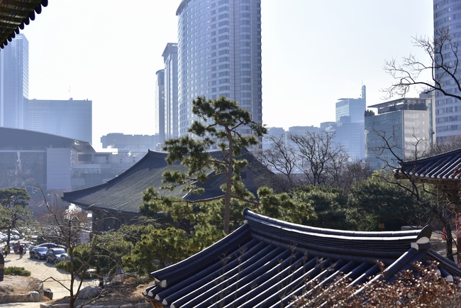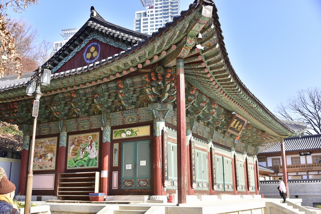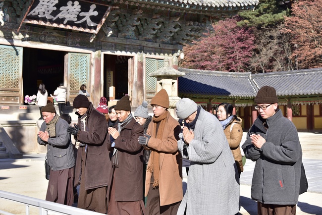 The third visiting place was Bongeun-sa temple in Gangnam District, Seoul. This is one of the great monasteries in Seoul, a Buddhism complex with harmonious group of constructions serving spiritual activities to local Buddhists. Originally, this pagoda had been called Gyeonseong-sa but was restored and renamed Bongeun-sa in 1498.