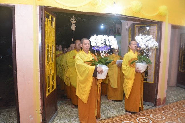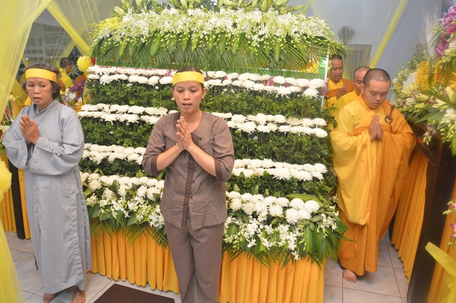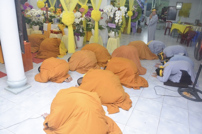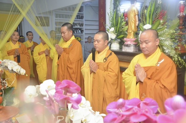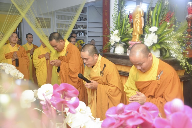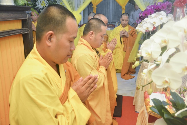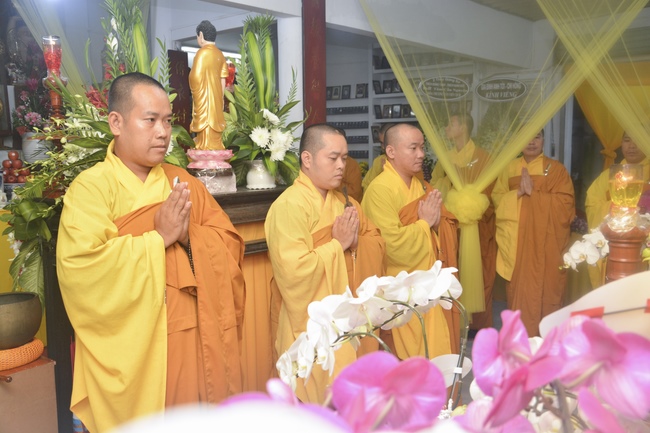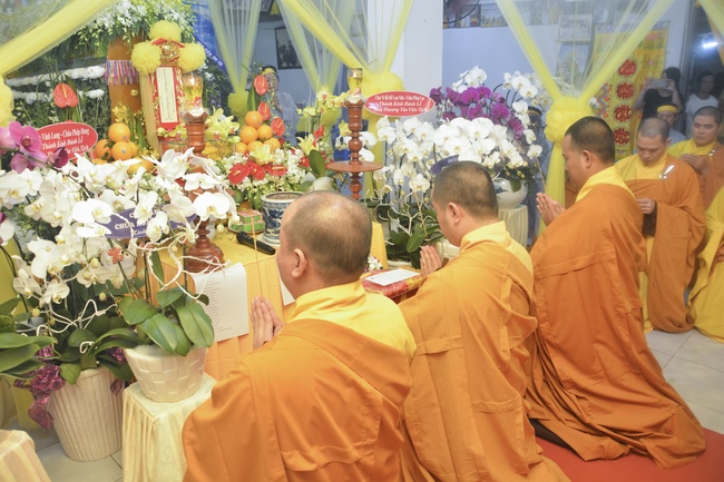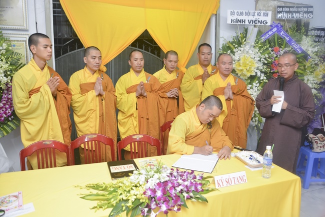 In the evening of Nov 29, 2017 (Oct 12, lunar calendar), monks from Hoang Phap pagoda, on behalf of Abbot Thich Chan Tinh, came to offer incense, pay the last tribute to the late Most Venerable and pray for his reincarnation in Buddha land.