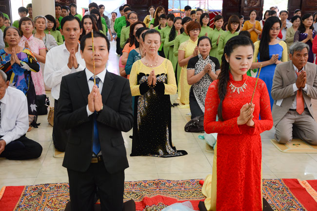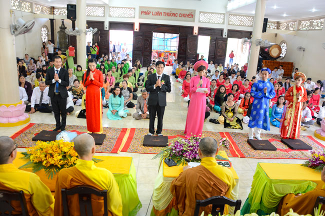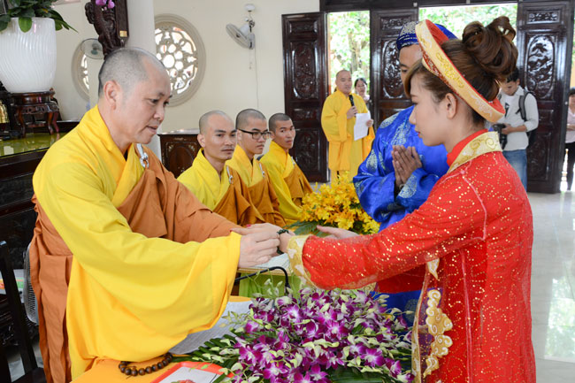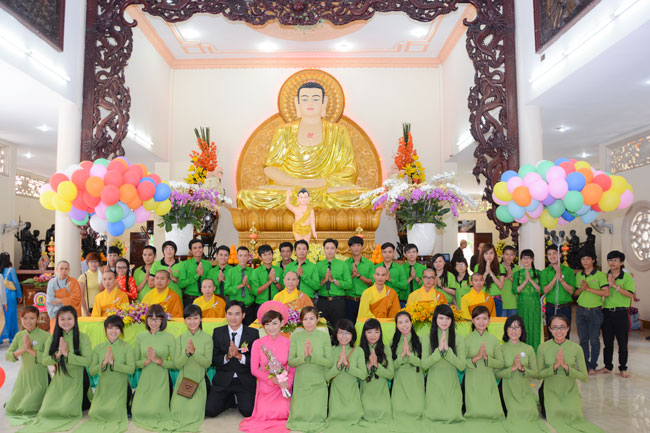 Being aware of the significance and the importance of organizing the wedding in pagodas, today, on 17th May 2014 (19th April, Year of the Horse), three couples held their wedding ceremony at Hoang Phap Pagoda witnessed by Ven. Abbot and all the monks.