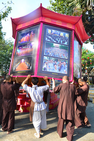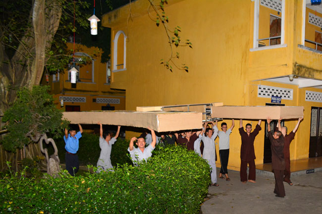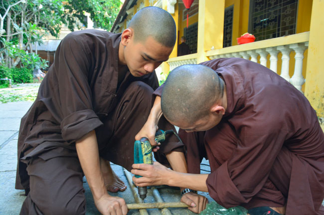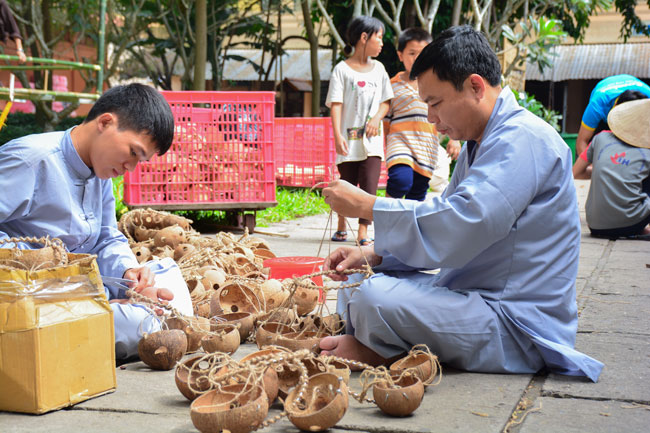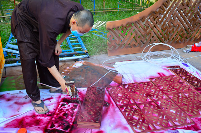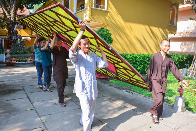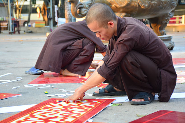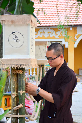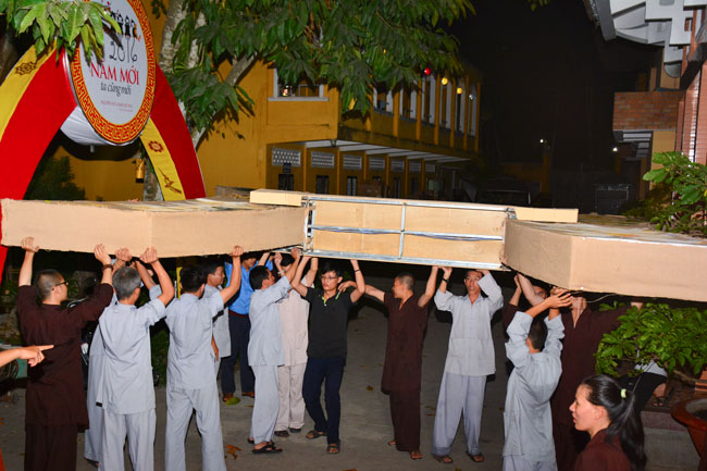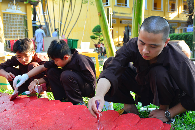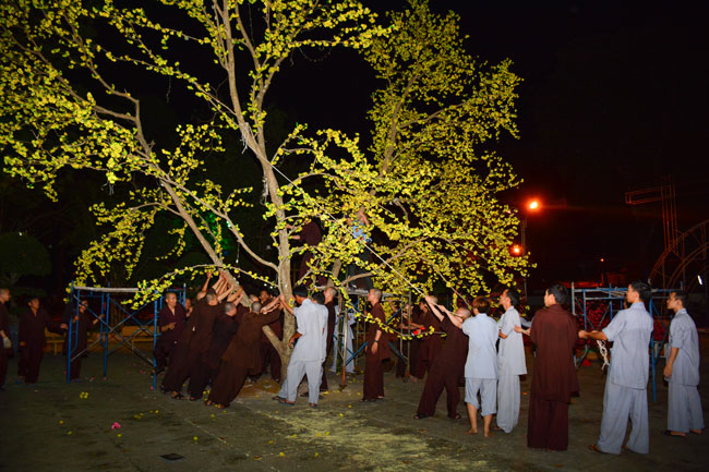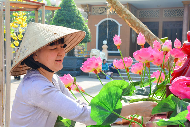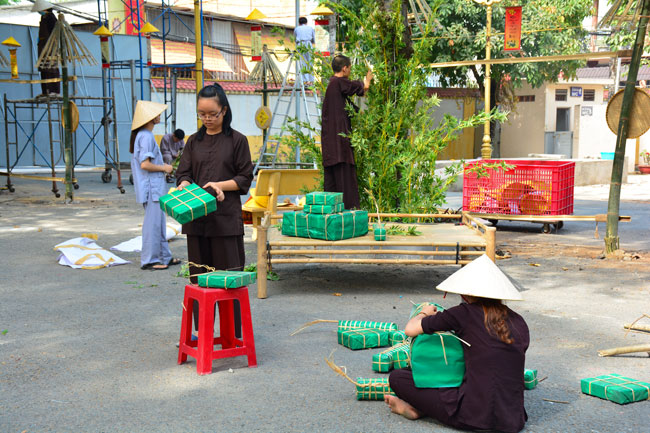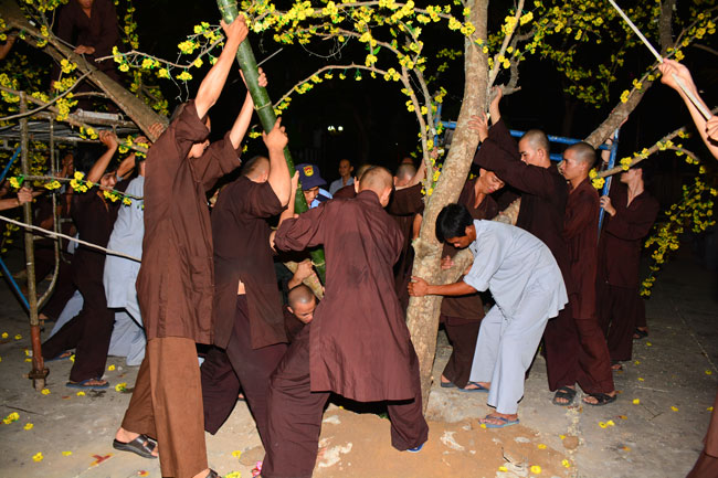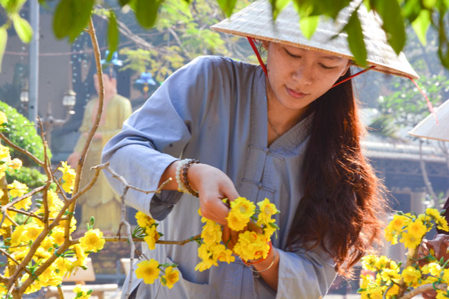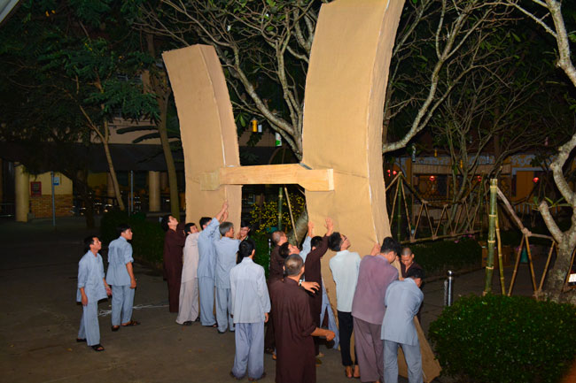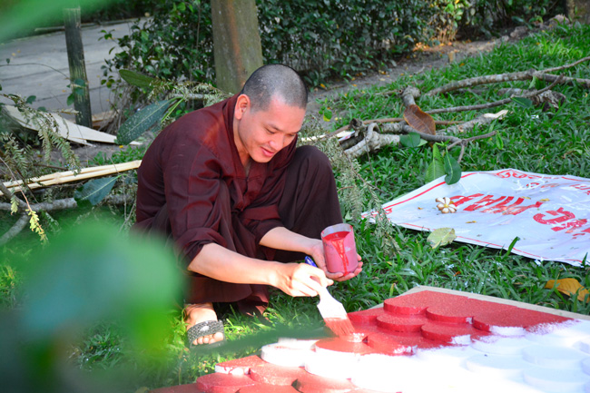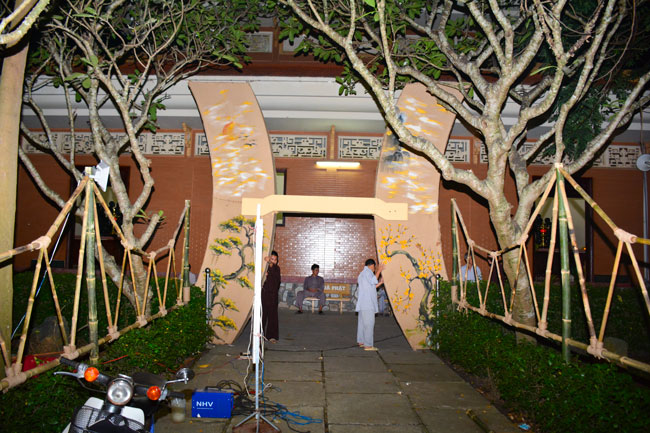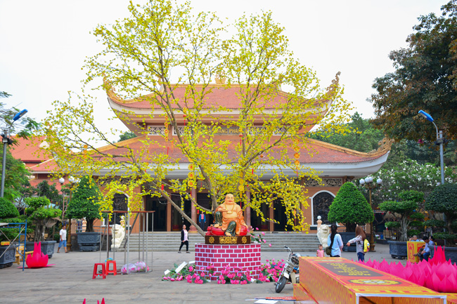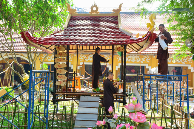 These motifs, patterns followed the North stylized temples, combined with traditional and modernity are made the monumental gate to welcome Buddhists everywhere for visiting and praying. Swinging game of ethnic minorities in mountainously northern region was built by monks on the campus of Avalokitesvara pedestal. Moreover, each tree on campus is decorated calligraphy on Spring season with “banh chungâ€, “banh tetâ€, roots of every yellow apricot tree contributing to full spring of meditation to everyone. In the campus of ancestor’ stupa is a peach garden, with communal roof - a characteristic of Tay Nguyen basaltic soils. Some miniature scenery will be distinctive spots creating a beautiful frame to welcome the spring.