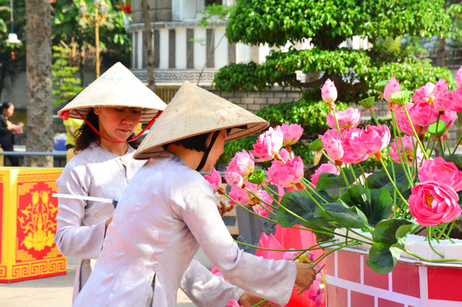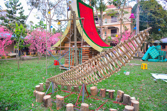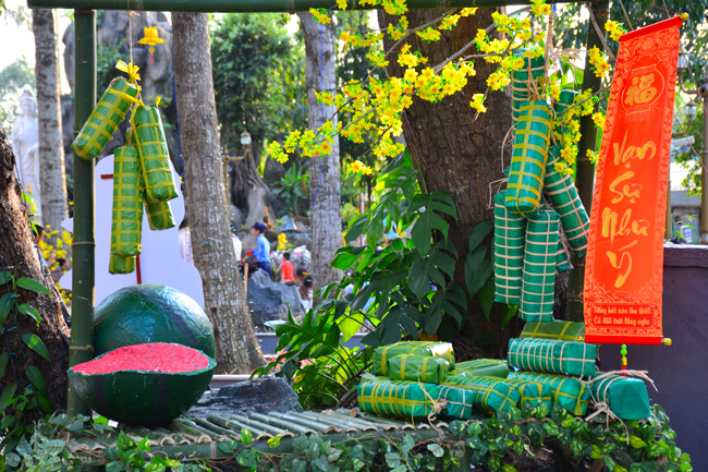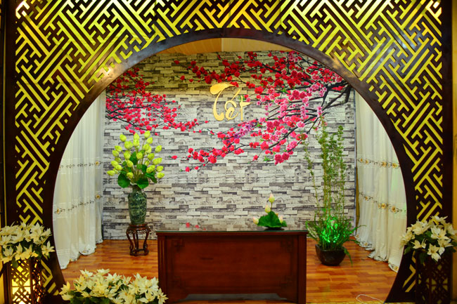 Familiar pictures of thatch roof, the spring of southern delta, was recreated on both sides of the main hall. All bring real closeness of NewYear here.