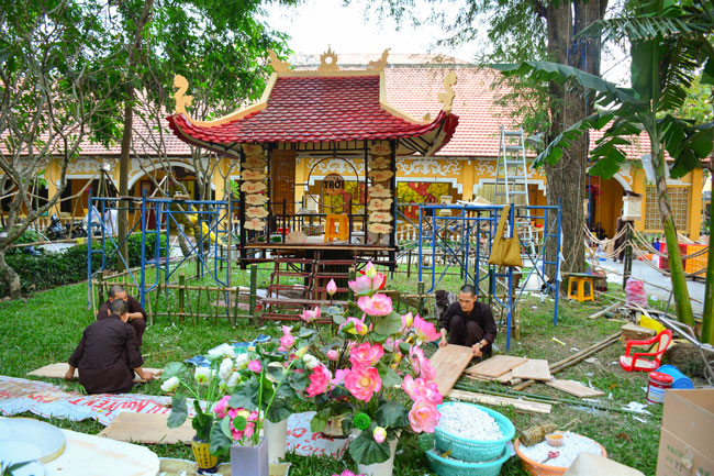 To beautify for Maitreya in Monkey Year – Buddhist calendar 2560 – Christian calendar 2016, since mid- December, the monks and Buddhists of Hoang Phap pagoda initiatively created unique models, becoming more joyful and warm to people when they go for sightseeing, praying in the early NewYear days. This year, all the models are designed according to traditional features of each regions of ethnic Vietnamese. Highlights and features of all three regions : Northern-Central-Southern Vietnam will be created in the pagoda grounds.