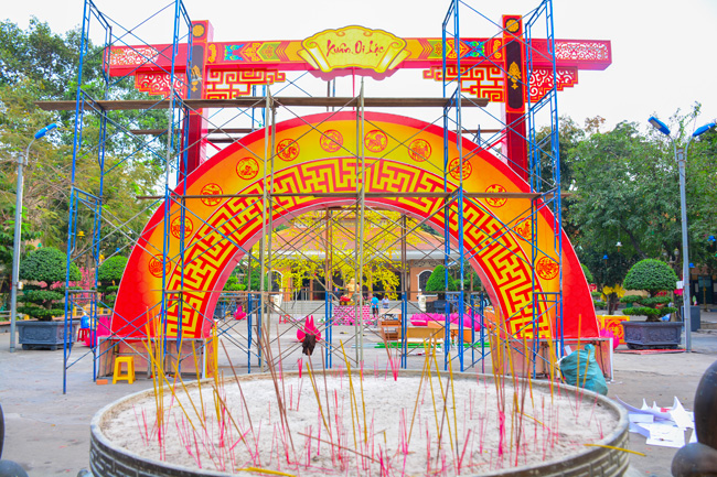 It can be said that the harmony of combination between tradition and modernity has brought particular beauty for specific models. All of it includes the hope to bring new and strange things for guests, Buddhists during NewYear. In addition to receiving lucky enverlop, visitors will admire the beauty of three regions at Hoang Phap campus in this Monkey Year.