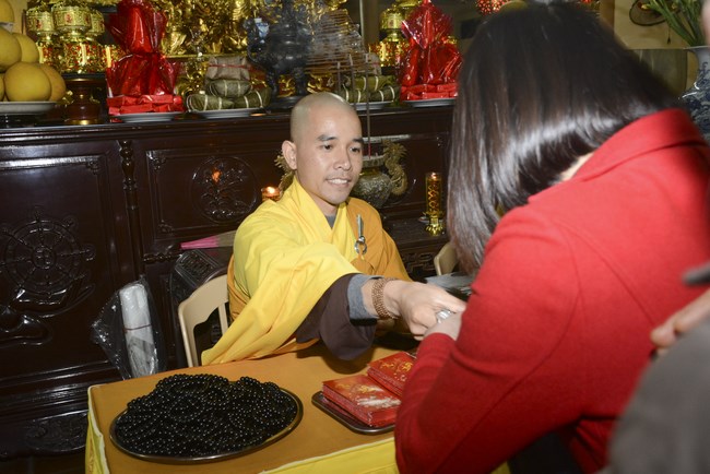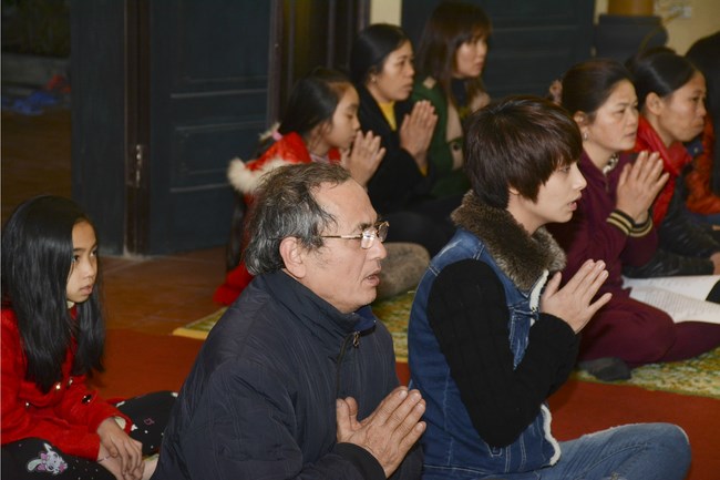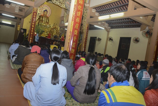 Enjoying in the air of all Vietnamese in Vietnam and people abroad to welcome New Year Eva, Each Buddhist also enjoys the warmness atmosphere with whole of monks and Buddhists who are gathering in the sanctuary of Tay Khanh pogoda to welcome the New Year Eve.