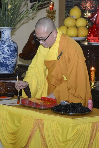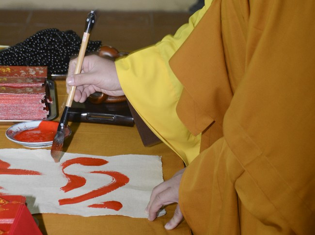 End of the talking session, the Reverend presented for Buddhists a poem from his calligraphy of “Buddha’s Heart†on the occasion of the first day of Monkey New Year: