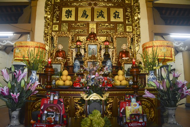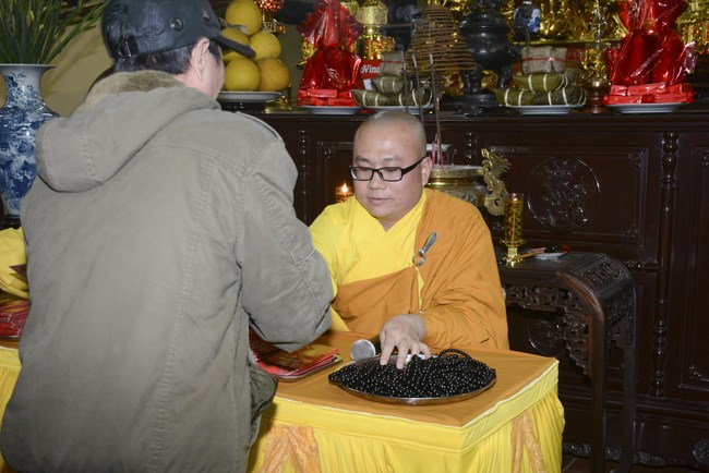 The Reverend abbot with monksof the pagoda came to sanctuary to proceed ceromony course at the beginning of the year, praying for country in peace, people get tranquility in blessing of Triratna.