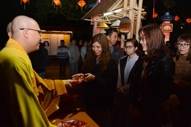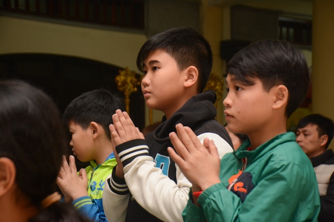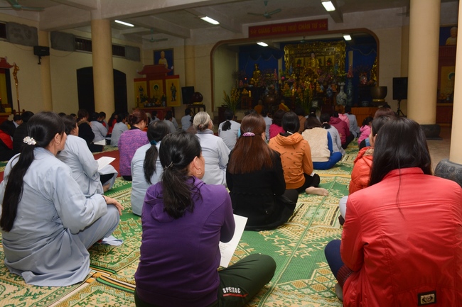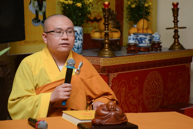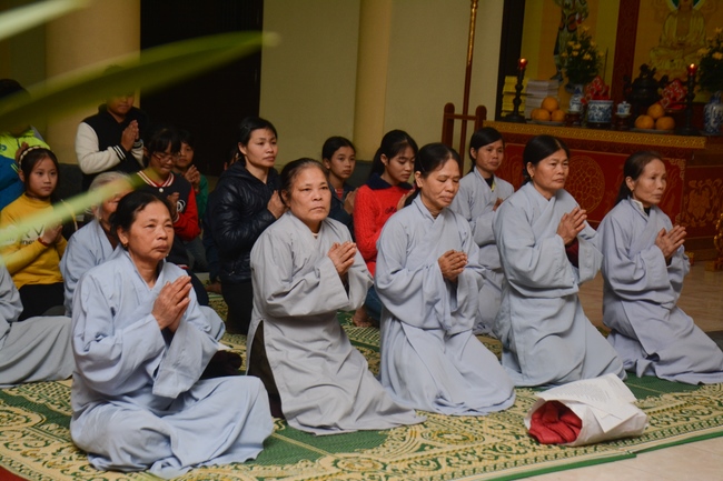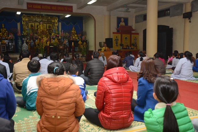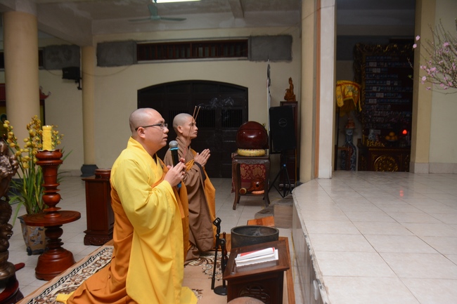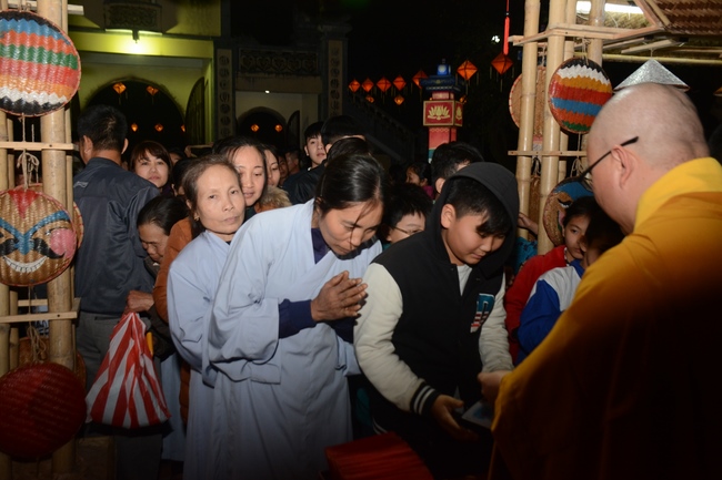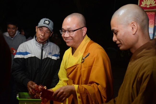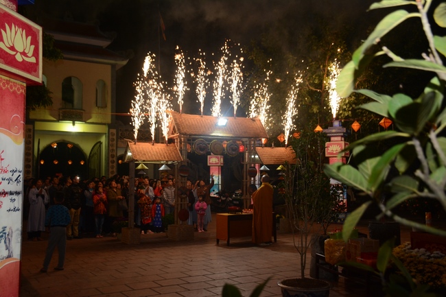 At the moment of New Year’s Eve, Buddhists recited the Buddha’s name to welcome monks’ arrival to the hall to carry out the New Year’s Eve ceremony and welcome the new year. Next, All the Buddhists directed their minds sincerely toward the Triratna, and honestly prayed for their family’s peace and good things. After the ceremony, Junior Ven. Thich Tam Kinh gave the wishes and short preach to the attendees . He advised Buddhists should patiently cultivate Buddha Dharma, go to pagoda regularly, worship the Buddha and listen to the monks’ preaching. Moreover, in the family, everyone should take on their responsibility, get along with and mutually respect each other. On occasion of new year, Junior Ven. And monks prayed that the Triratna would bless them with peace, health, and wisdom to cultivate diligently, which will certainly lead to success. He also made lines of verse for everybody: