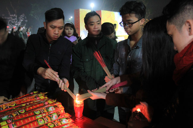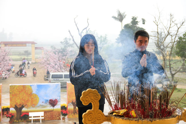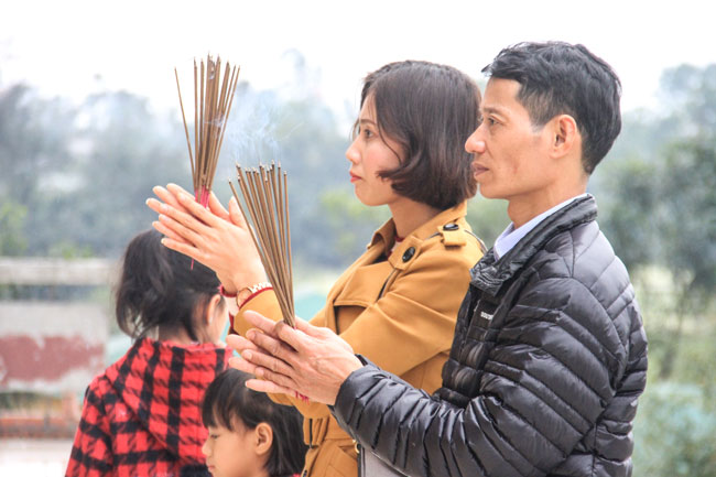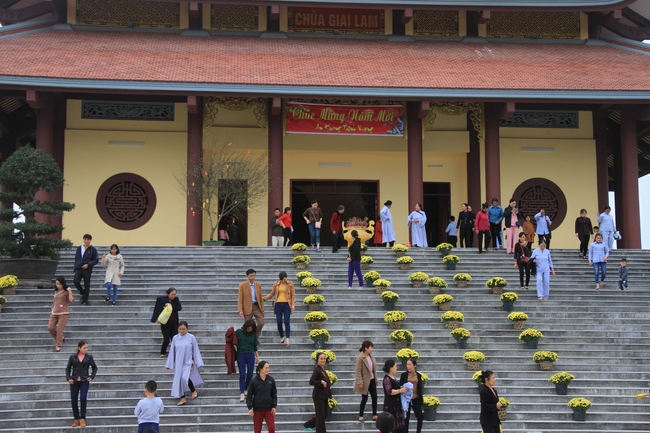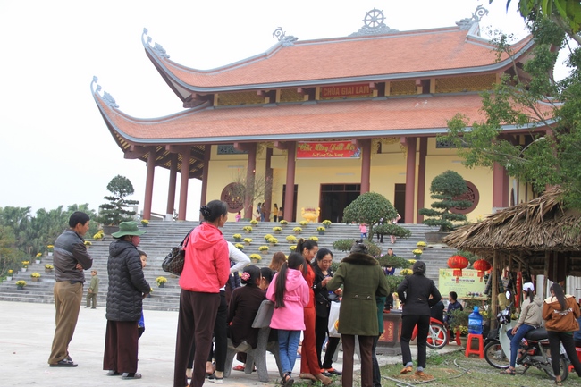 With that noble meaning, in the early morning of the first day of the Dog Year, many Buddhists from everywhere came to Giai Lam Pagoda, Tinh Phap ( Thach Tan commune, Thach Ha District, Ha Tinh Province) to offer incense, worship the Buddha and exchange wishes.