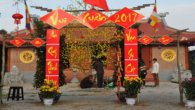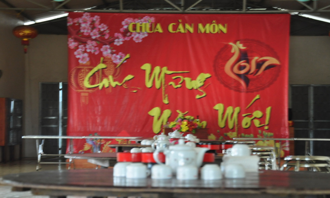 Despite the Northern frosty and prolonged drizzly weather, the Sangha and Buddhists of Can Mon Pagoda in the joyful spirit was busy finishing decorating the pagoda to welcome the Spring, which is also a welcome to Buddha Maitreya’s birthday (lunar January, the first)