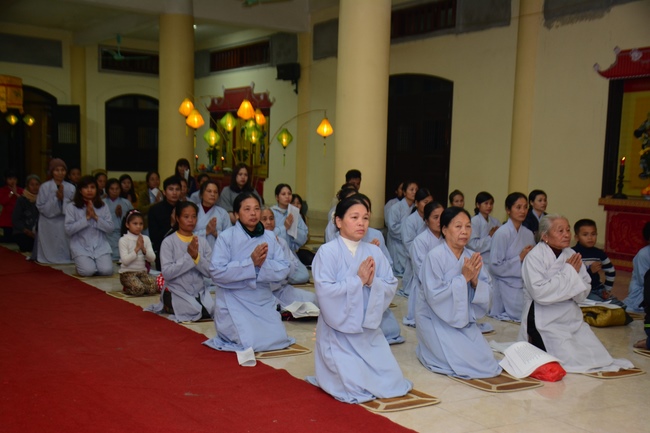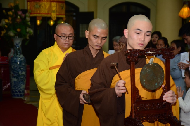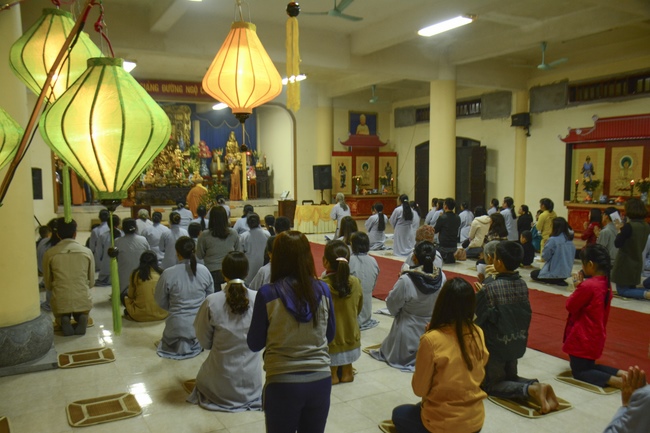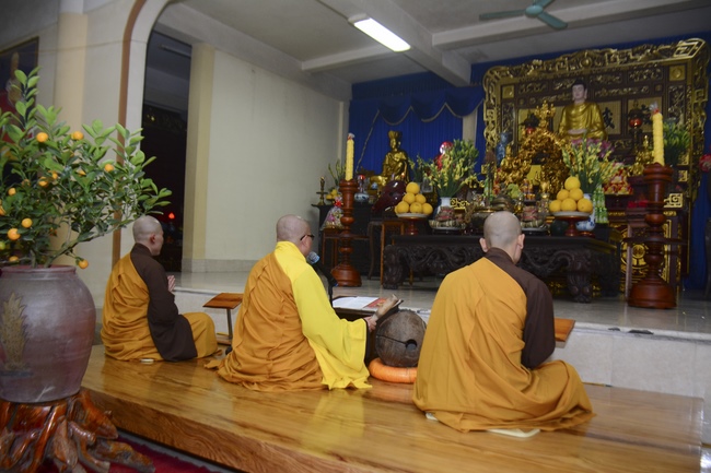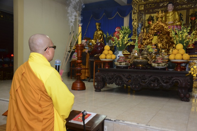 At the moment of New Year’s Eve when the old year passes and the New Year is coming, the Sangha came to the main lecture to perform incense offering at the Buddha alter and prayed for world peace and happiness for all people.