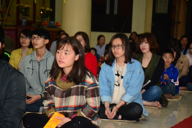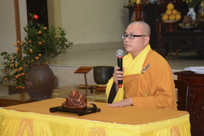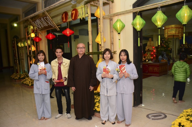 On the occasion of the beginning of spring, the Venerable wished all the Buddhists and their families a New Year of peace, happiness and diligence in dharma practice. Then, he gave a dharma talk in which he emphasized that the old year had passed and the New Year was coming, we needed to refresh ourselves. Also, he added,last year, if those who had defilement such as false speeches, wrong actions, dishonest thoughts, etc. which caused suffering for themselves and others, they should get rid of them right away this year and later. In addition, head vised that the Buddhists who goes to pagoda regularly, chant sutra, listen to dharma, etc. need to apply the Buddha’s teachings in life, as well as always keep the five precepts, in order to improve ourselves to become good people, which benefits ourselves, family and society.