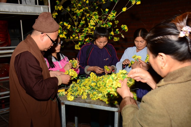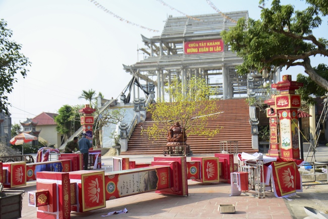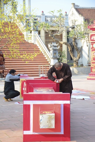 That yellow apricot blossoms bloom out everywhere in the South and a fine show of bright red peach flowers is seen in the North gives the signal of spring returning to the Viet homeland. In harmony with the spring atmosphere in all over the country, Tay Khanh Pagoda at Quang Hung commune, Kien Xuong district, Thai Binh Province, whose abbot is Junior Thich Tam Kinh, in spite of busy work of constructing the pagoda’s main Hall, he joined the local residents in designing models, which conveys the meaning of the nation’s traditional Tet Holiday.