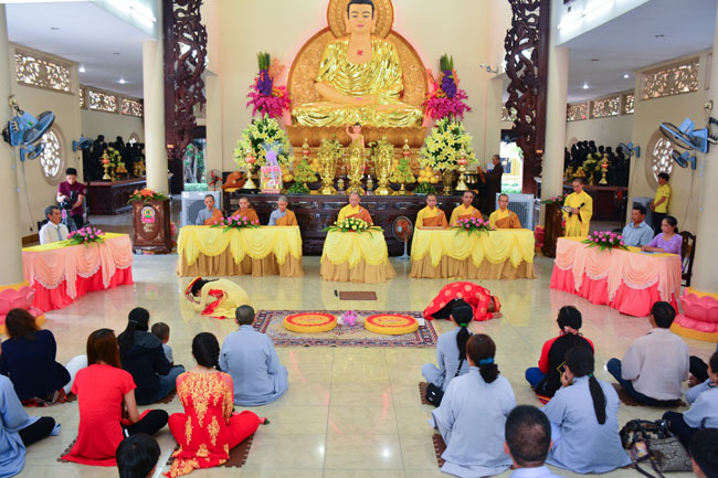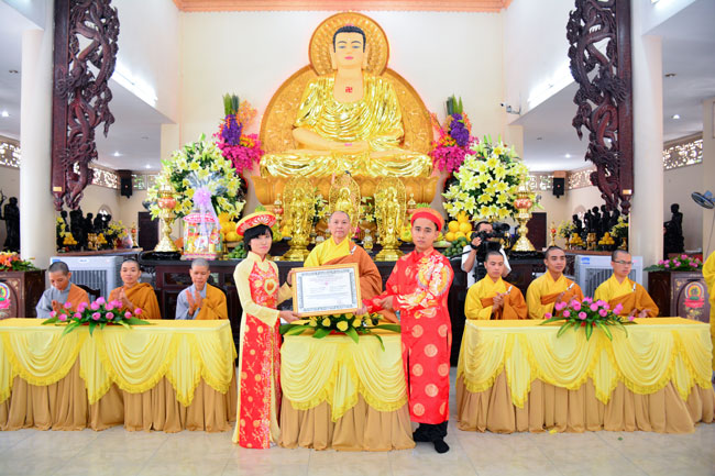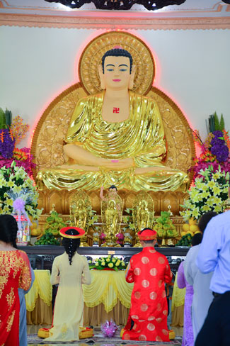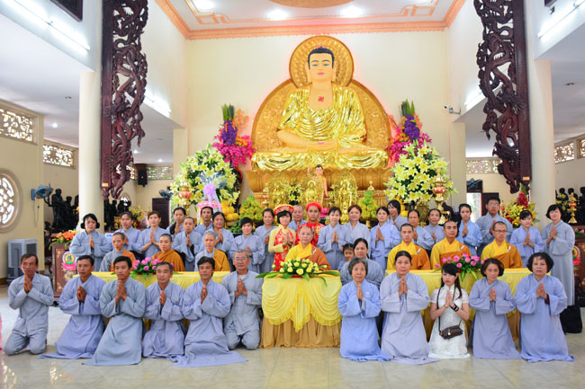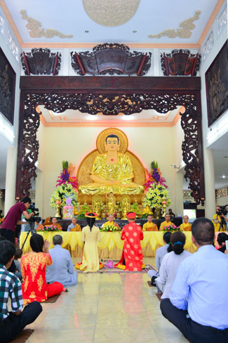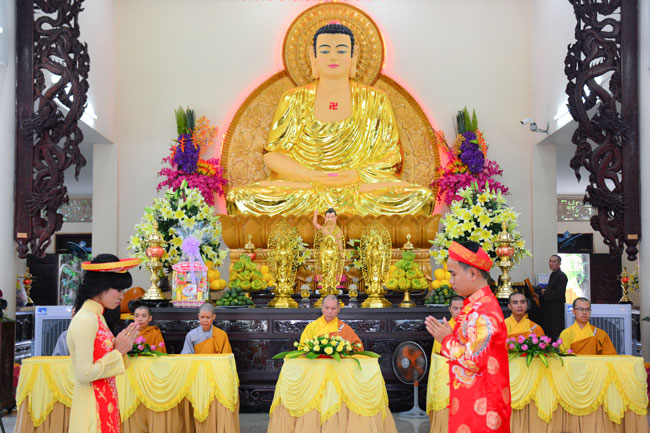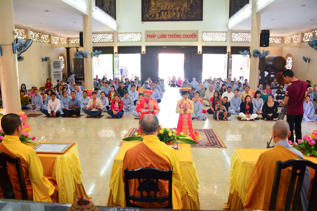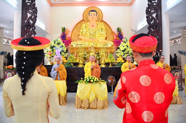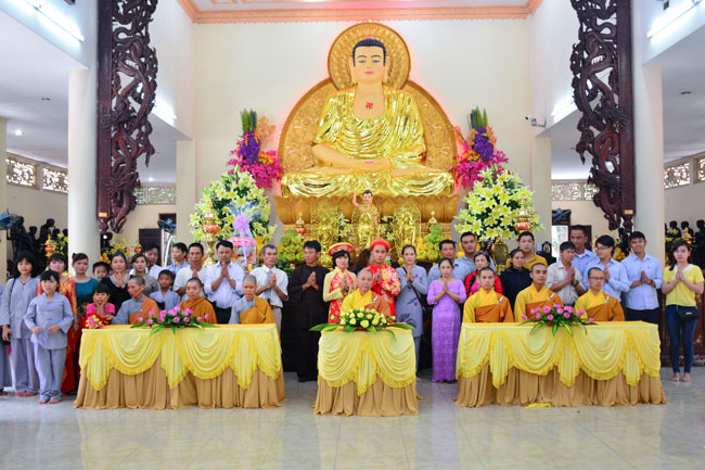 In the morning of March 19th, 2016 (Lunar February 11th, Monkey year) the wedding ceremony for young couple named Le Nhat Mau Sinh - Buddha name: Tinh Truong was joined in marriage with Nguyen Thanh Bich - Buddha name: Lien Bich hold at Hoang Phap buddhist temple.