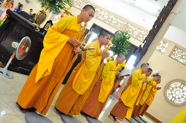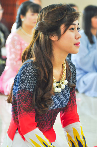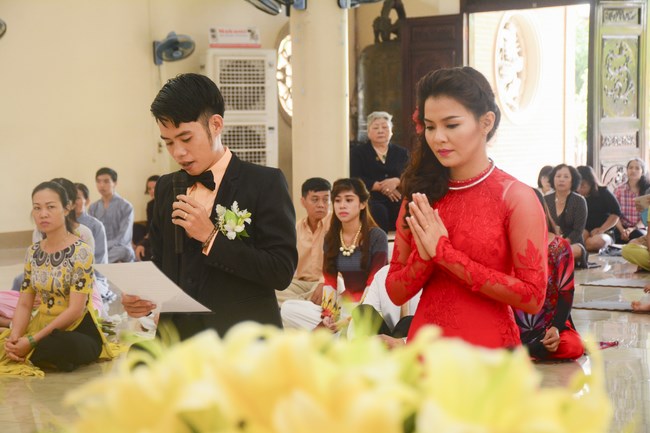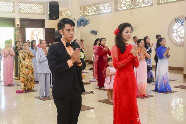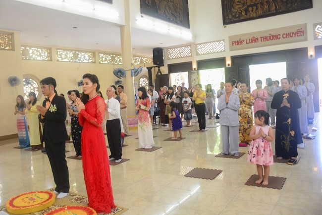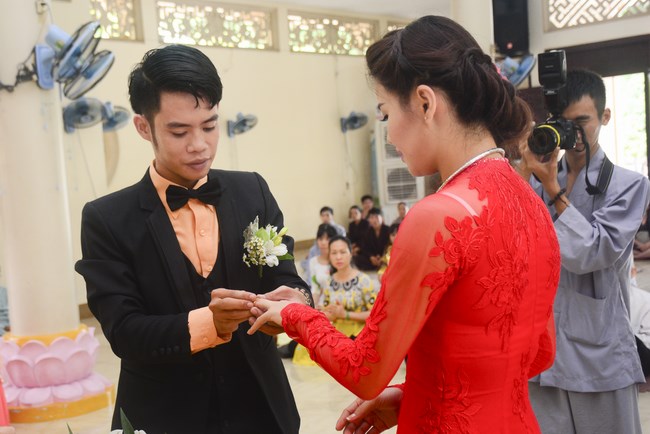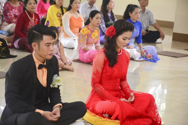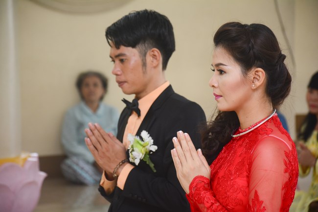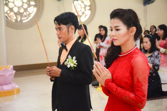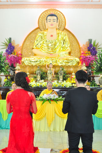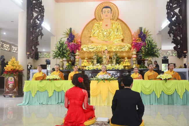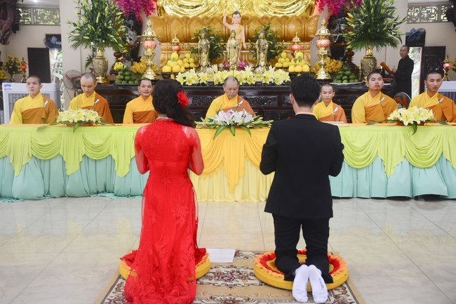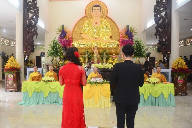Organizing a wedding ceremony at pagoda is one of the beauties in Buddhism culture. Even though this trend has just been initiated in recent years, it is enthusiastically followed by many Buddhist families. Under the solemn statue symbol of Bhagava and the witness of Three Jewels, young couples vowed a faithful marriage life and obeyed the ethical rules of Buddhism. The memory will make a deep imprint in two people’s heart, in order that both might know to stop trivial mistakes and appreciate each other once they keep rush pace of life .