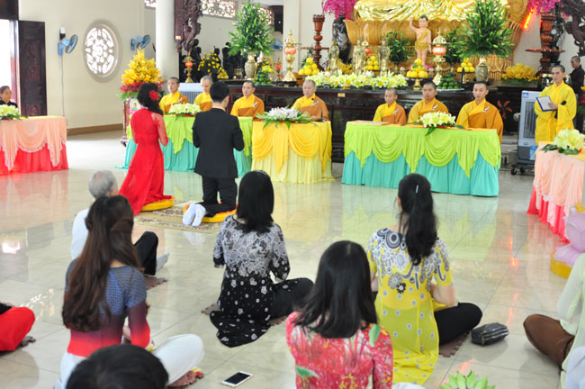 On Oct 24th, 2015 (Sept 12th, Goat Year), Hoang Phap monastery celebrated a wedding ceremony for a young couple: a groom Nguyen Quoc Tuan (Religious name: Thien Toan) and a bride Tran Thi My An (Religious name: Dieu Minh Phuoc).