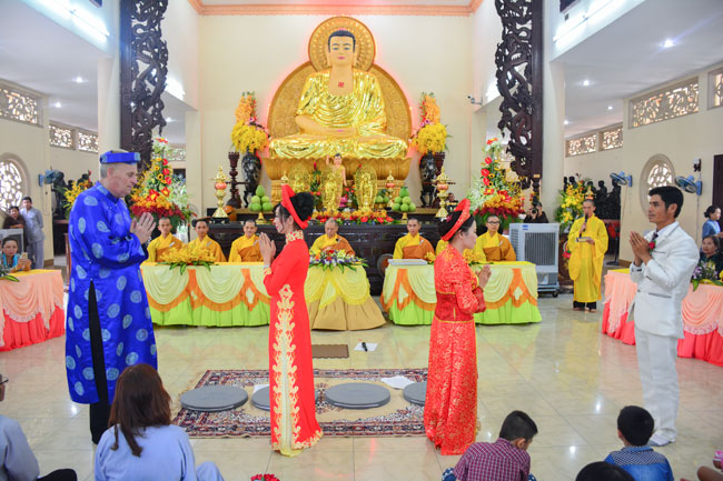 On 16th, 17th April 2016 (10th,11th Lunar March. Monkey year), Hoang Phap pagoda organized Hang Thuan (a wedding ceremony) for couples: Tran Van Nam (religious name Tinh Nam) and Le Thi Ha (religious name Lien Ha), Lang Van Viet (religious name Tinh Viet) and Le Thi Thanh Mai (religious name Dieu Tinh), Kevin Bubnis and Bui Thi Thanh Tra (religious name Ngoc Thu).