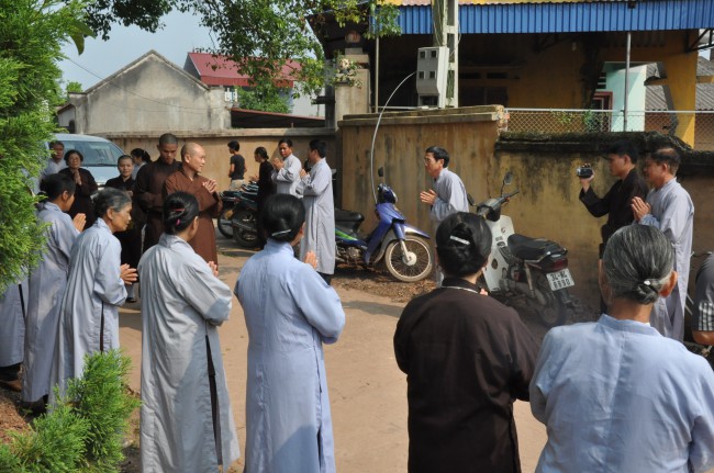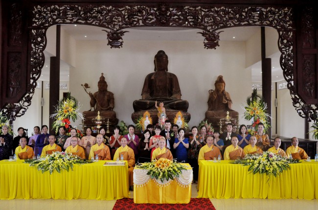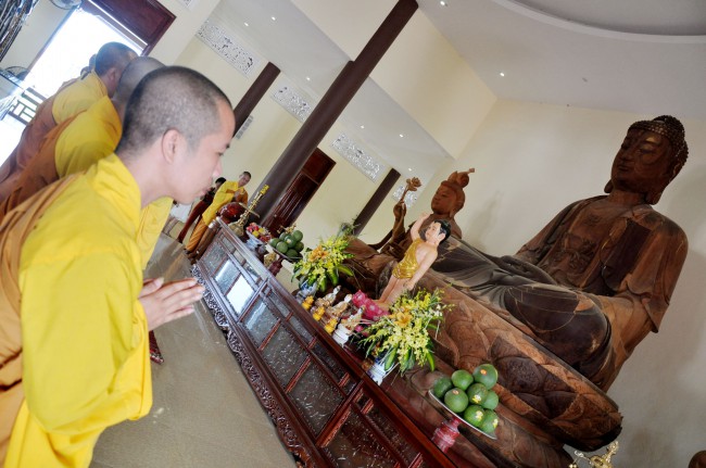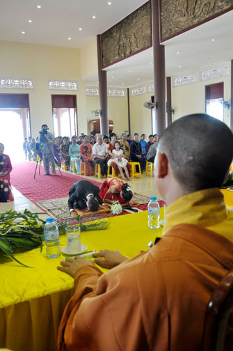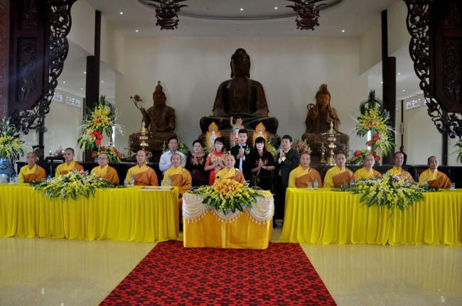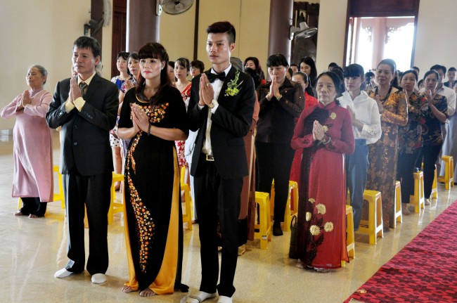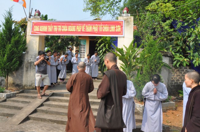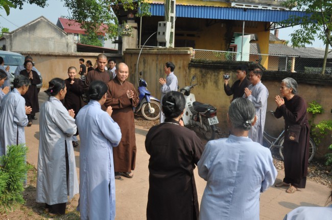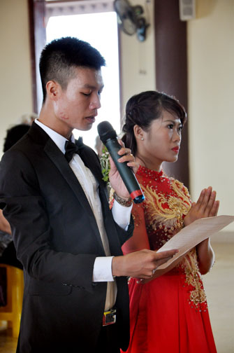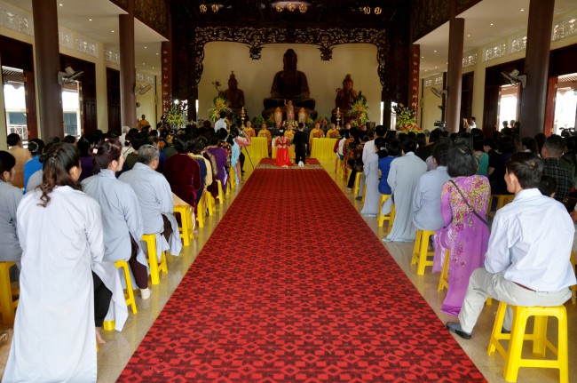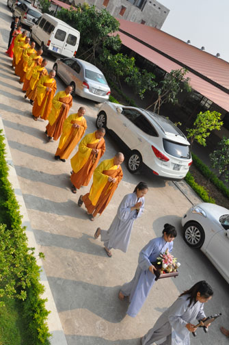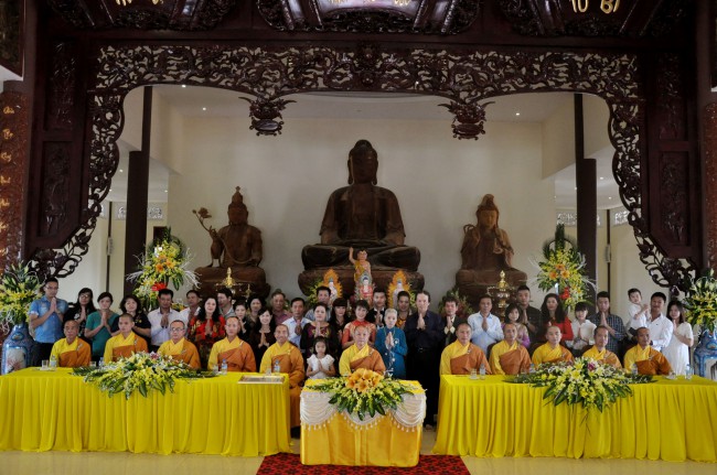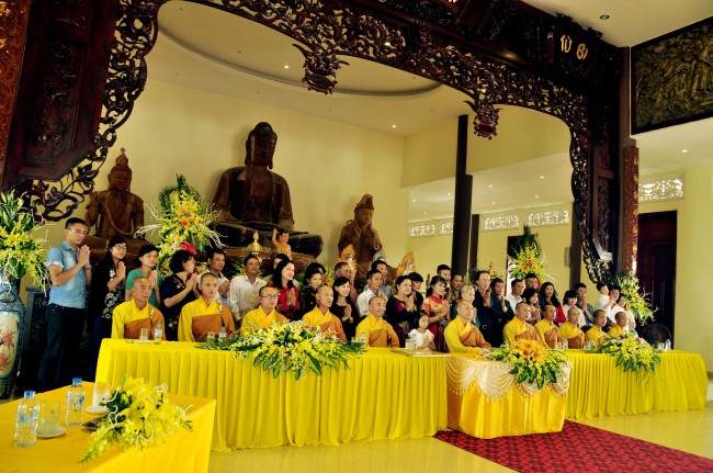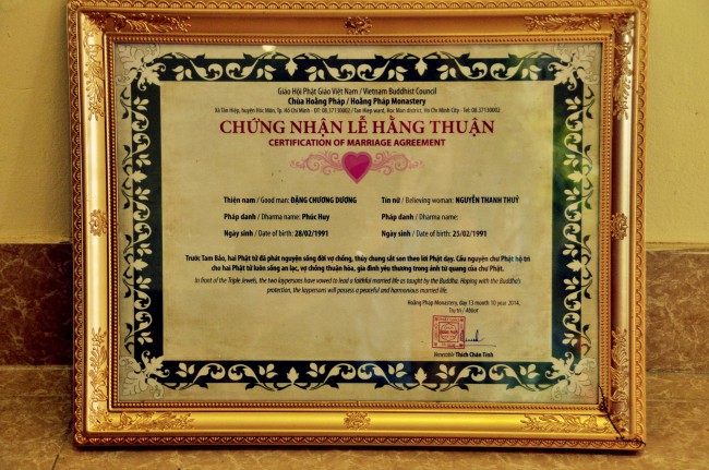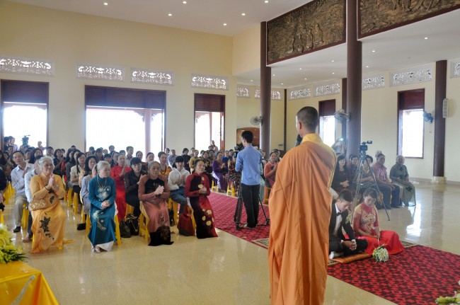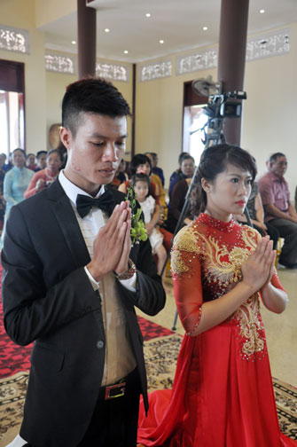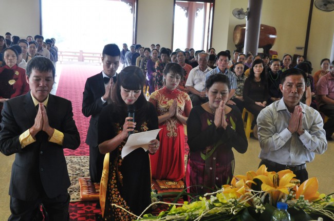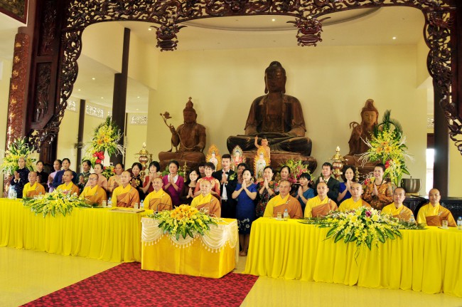 In the morning October 13th, 2014 (September 20th Horse Year), Venerable Thich Chan Tinh and monks of Hoang Phap pagoda Dien Quang officially visited Dien Quang pagoda, Guot village, Viet Hung commune, Que Vo district, Bac Ninh province to witness Wedding Ceremony for the young couple: the groom Chuong Duong Dang, named Phuc Huy and the bride Nguyen Thanh Thuy.