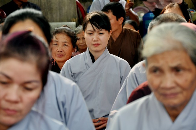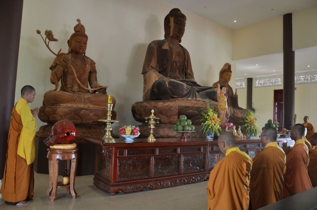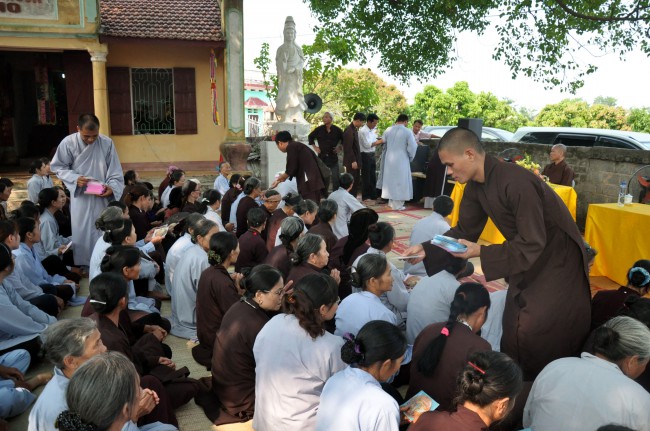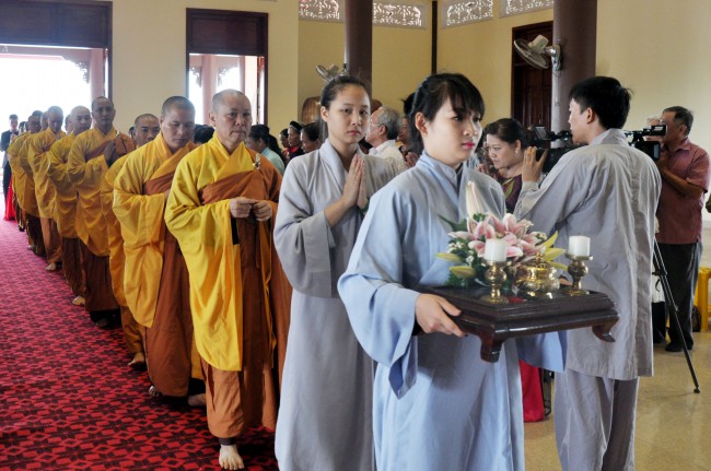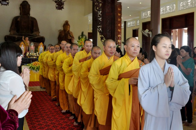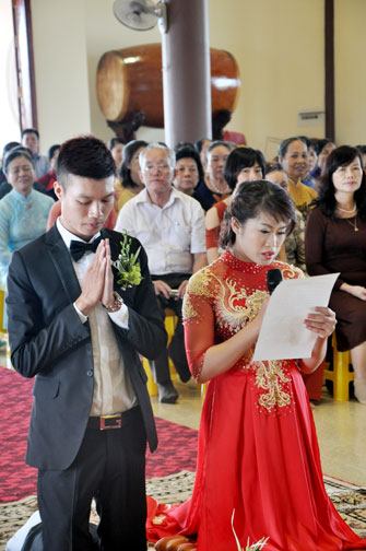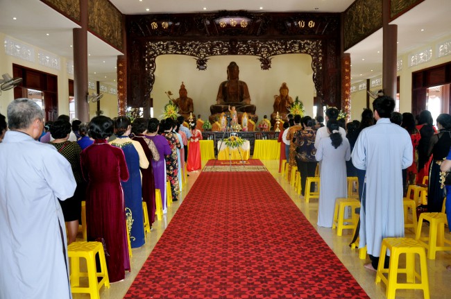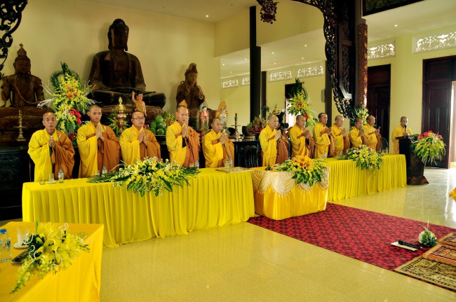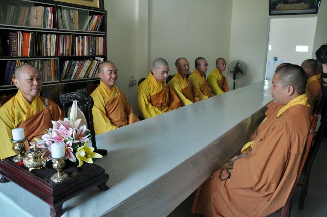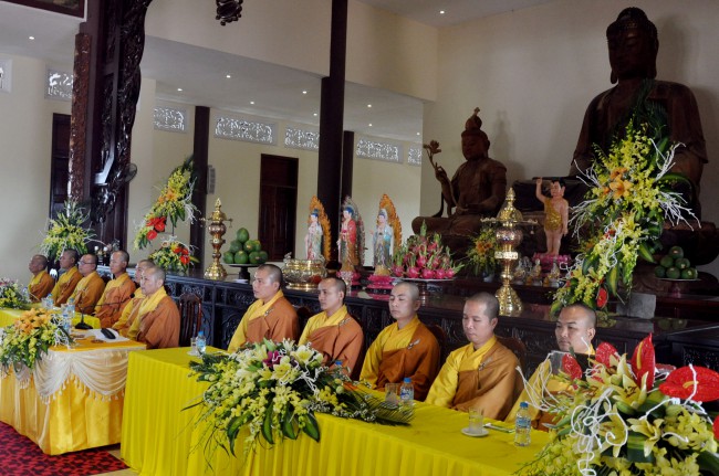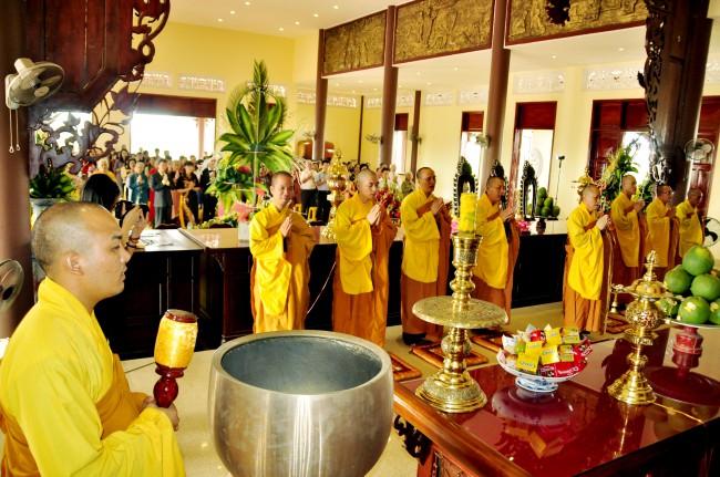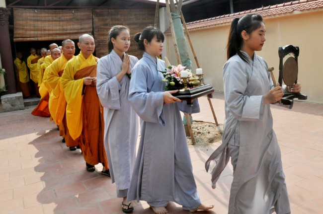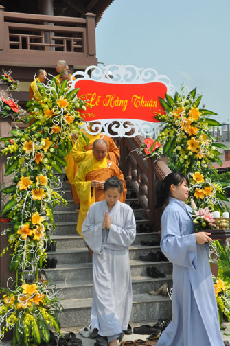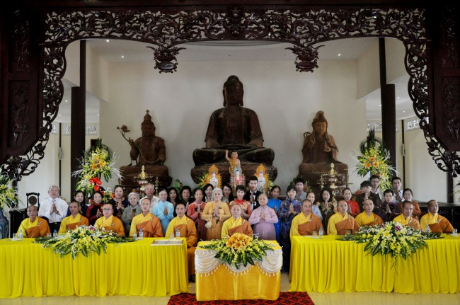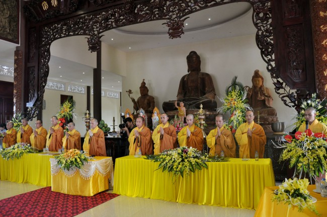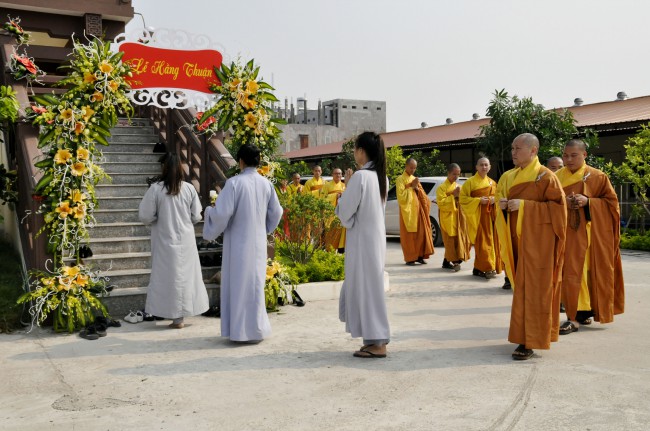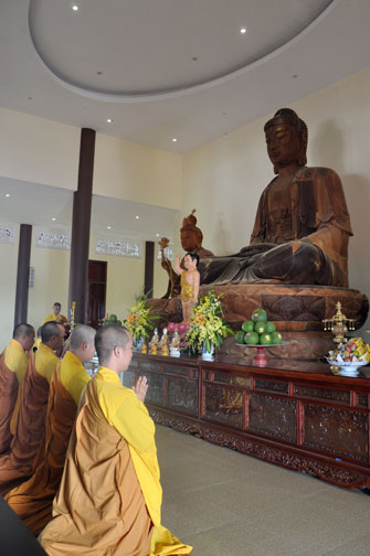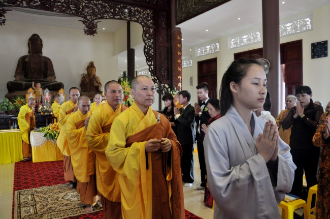 In the morning October 13th, 2014 (September 20th Horse Year), Venerable Thich Chan Tinh and monks of Hoang Phap pagoda Dien Quang officially visited Dien Quang pagoda, Guot village, Viet Hung commune, Que Vo district, Bac Ninh province to witness Wedding Ceremony for the young couple: the groom Chuong Duong Dang, named Phuc Huy and the bride Nguyen Thanh Thuy.